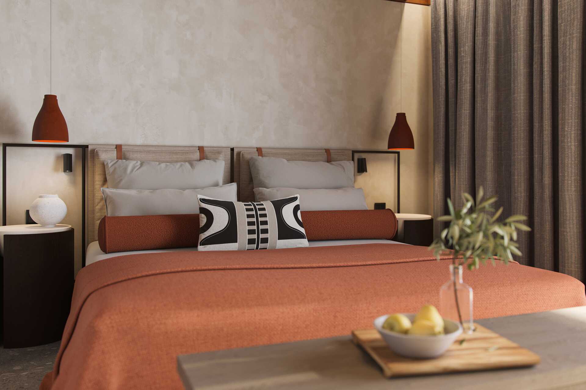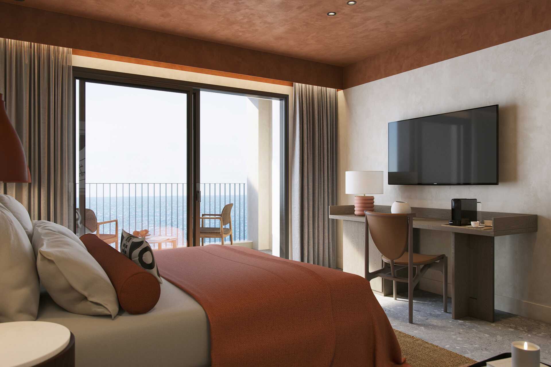 Større dobbeltrom med balkong eller terrasse, noen med havutsikt. En dobbeltseng. Mulig med ekstraseng for en tredje person. Wifi, safe og luftkondisjonering inkludert. Lite kjøleskap. Vannkoker samt kaffe og te. TV. Badekåper og tøfler Hårføner. Dusj. Rengjøring 7 ggr/uke.