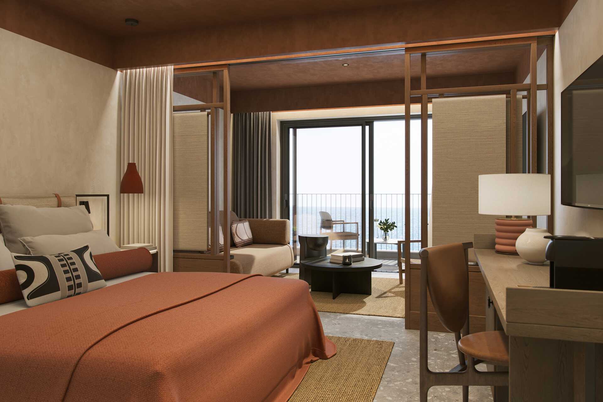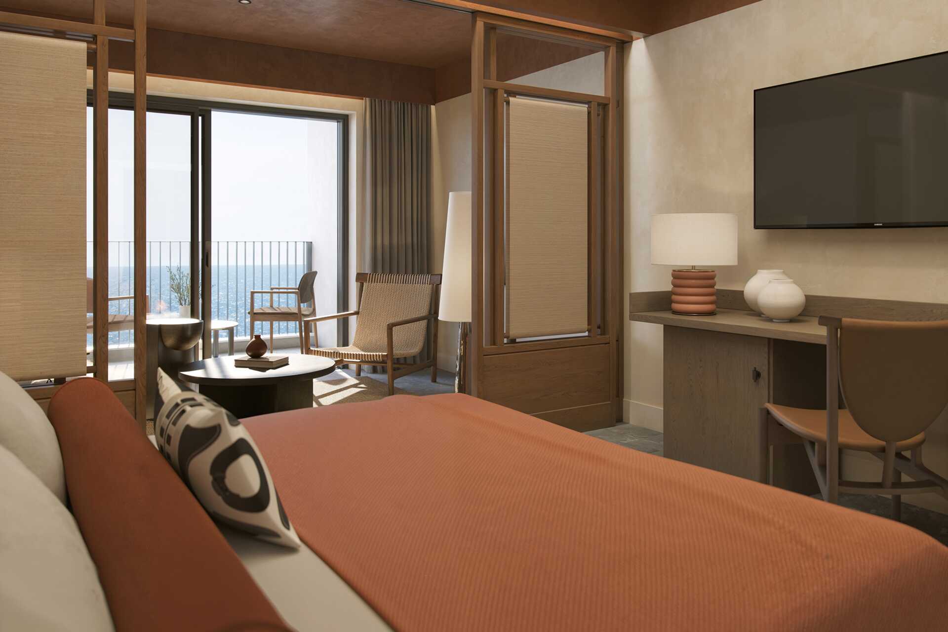 Juniorsuite med balkong eller terrasse, noen med havutsikt. Gjesterommet er delt inn i to deler med en skyvedør. En dobbeltseng. Mulig med ekstraseng i sovesofa. Wifi, safe og luftkondisjonering inkludert. Lite kjøleskap. Vannkoker samt kaffe og te. TV. Badekåper og tøfler Hårføner. Dusj. Rengjøring 7 ggr/uke. Barn under 2 år regnes inn i maksantallet i rommet.