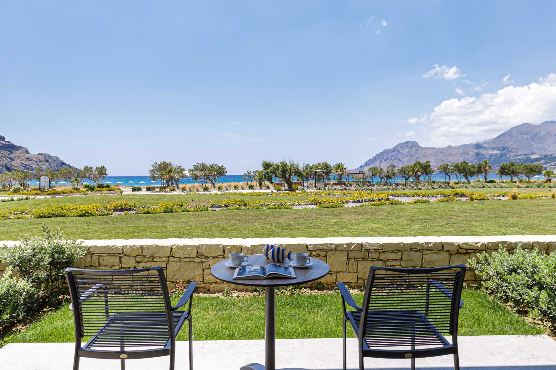 Plakias er en fin liten by med genuin gresk atmosfære og en herlig langstrakt strand. Det er gangavstand fra hotellet til byen og det meste av strandpromenaden er uten trafikk. I Plakias finner du det meste du trenger i ferien, restauranter, koselige barer, matbutikker, apotek, bakeri, dykkesenter, lokale håndverkere og en fin badevik like etter Plakias by. En smalere vei med veldig lite trafikk må krysses for å komme til stranda. det er også en smal vei mellom hotellområdene.