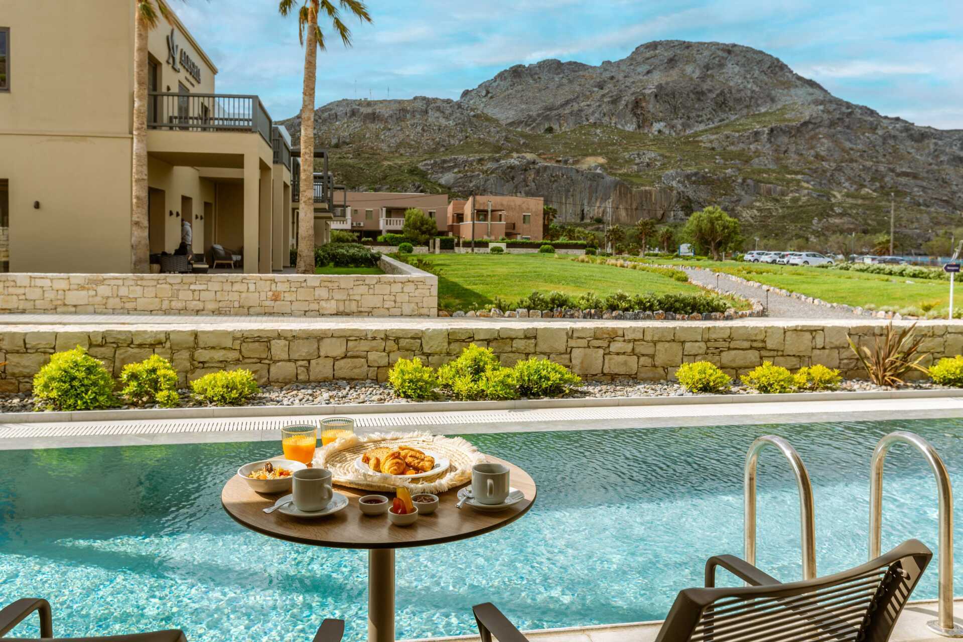 Alegria Beach Resort ligger i Plakias på Kreta. Det er en uutforsket perle, kjent for sine bratte fjellvegger og krystallklare vann. Herfra er du nær en mengde vakre strender og sjarmerende små landsbyer som er hyggelige utfluktsmål. Hotellet er moderne og leilighetene er fantastiske – noe av det beste vi har å tilby!
