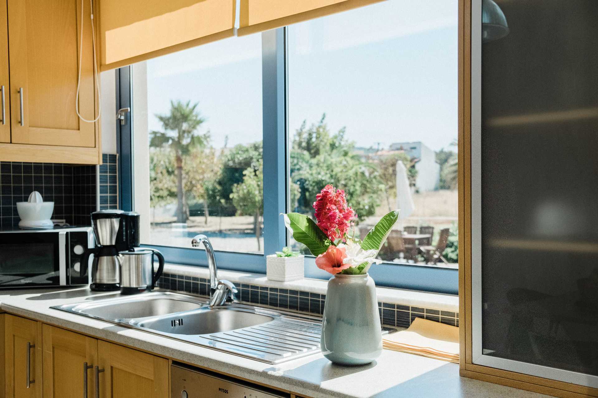 Toromsleilighet med markterrasse, eget basseng og begrenset havutsikt. På terrassen er det spisebord og solsenger, og hver leilighet har sin egen baliseng på plenen. Leilighetene ligger i enetasjes villaer. Et soverom og stue med minikjøkken. En dobbeltseng. Mulig med ekstrasenger i oppredbare lenestoler. Velutstyrt kjøkken med platetopp og stekeovn, kjøleskap og fryser, oppvaskmaskin, kaffetrakter, juice presse, mikrobølgeovn og enkelt kjøkkenutstyr. Vannkoker på forespørsel. Wifi, luftkondisjonering og safe inkludert. TV. Hårføner. Baderom med dusj og wc. Rengjøring 6 ggr/uke.