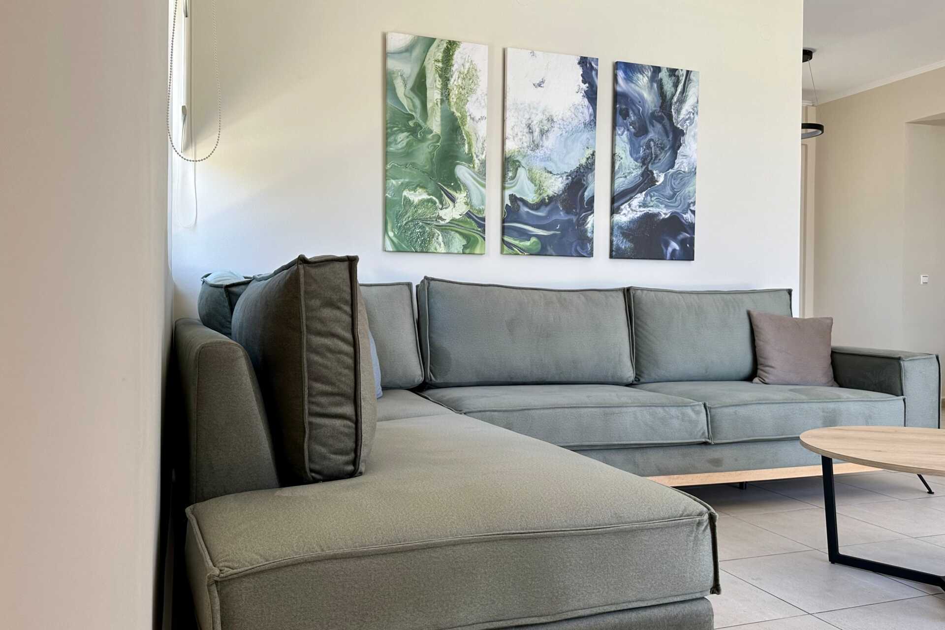 Treromsleilighet med markterrasse, rgrt basseng og begrenset havutsikt. På terrassen er det spiseplass og solsenger, og hver leilighet har en baliseng på plenen. Leilighetene ligger i villaer med én eller to etasjer og moderne møbler. To soverom og kombinert stue med kjøkken. Komfortabel dobbeltseng med overmadrass på soverommene. Mulighet for ekstrasenger i oppredbare lenestoler. Velutstyrt kjøkken med komfyr og stekeovn, kjøleskap, oppvaskmaskin, kaffetrakter, juicepresse, mikrobølgeovn og enkelt kjøkkenutstyr. Vannkoker på forespørsel. Wifi, luftkondisjonering og safe inkludert. TV. Hårføner. To bad med badekar eller dusj samt wc. Rengjøring 6 ggr/uke.