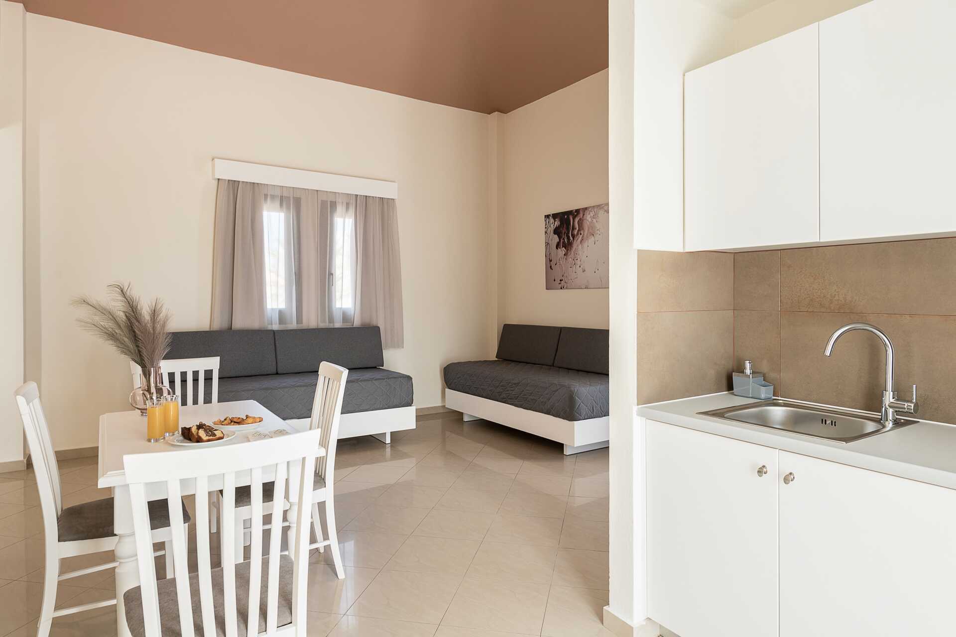 Ettromsleilighet med balkong eller terrasse. Kombinert soverom og minikjøkken. En dobbeltseng. Mulig med en ekstraseng i sovesofa. Minikjøkken med kjøleskap, kokeplater og enkelt kjøkkenutstyr. Wifi, luftkondisjonering og safe inkludert. TV. Strykejern og strykebrett. Badekåper og tøfler Hårføner. Badekar eller dusj samt wc. Rengjøring 7 ggr/uke.