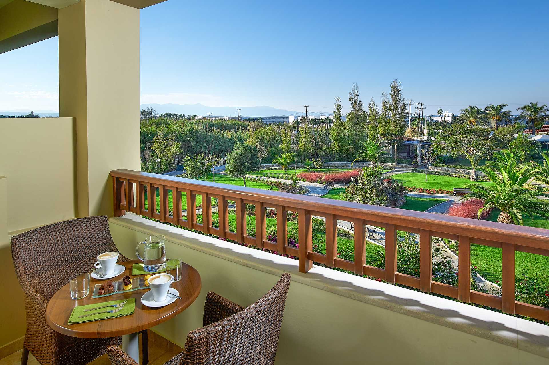 Dobbeltrom i bungalow med balkong eller terrasse. Rommene ligger i en toetasjes bygning ved siden av hovedbygningen. En dobbeltseng eller to enkeltsenger. Mulig med to ekstrasenger i feltseng og i sovesofa. Velkomstpakke med vin og vann. Wifi, luftkondisjonering og safe inkludert. Minibar. Vannkoker samt kaffe og te. Kaffemaskin, kapsler mot avgift. Smart-TV. Badekåper og tøfler Hårføner. Baderom med dusj og wc. Rengjøring 7 ggr/uke.