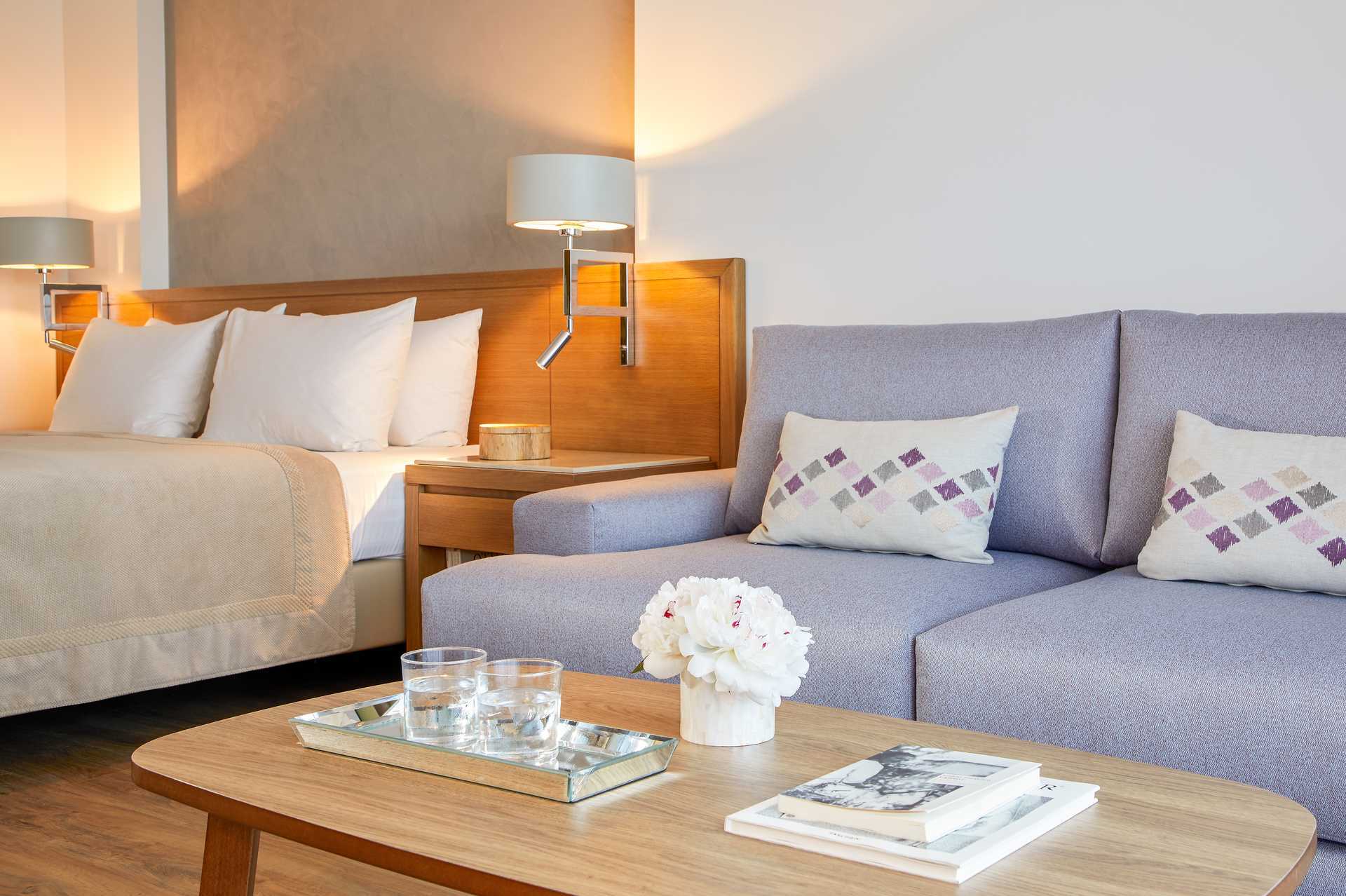 Dobbeltrom med balkong, noen med bassengutsikt. Rommene ligger i hovedbygningen. En dobbeltseng. Mulig med en ekstraseng i sovesofa. Wifi, luftkondisjonering og safe inkludert. Minibar. Velkomstpakke med vin og vann. Vannkoker samt kaffe og te. Kaffemaskin, kapsler mot avgift. Smart-TV. Badekåper og tøfler Hårføner. Baderom med dusj og wc. Rengjøring 7 ggr/uke.
