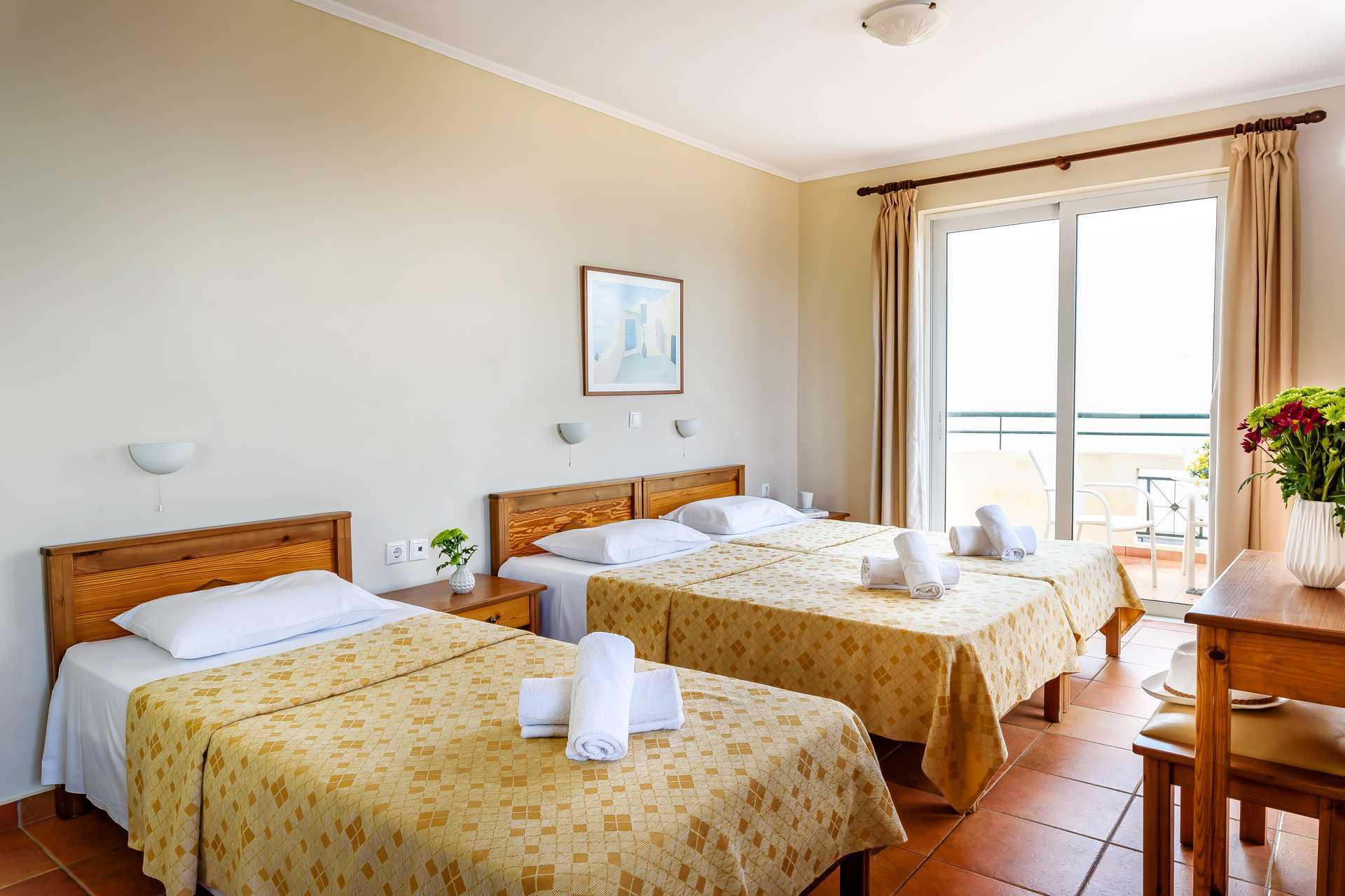 Ettromsleilighet med balkong eller markbalkong, noen balkonger har begrenset havutsikt. Minikjøkken. To enkeltsenger. Mulig med ekstraseng i enkeltseng. Minikjøkken med kjøleskap, kokeplater og enkelt kjøkkenutstyr. Wifi og luftkondisjonering inkludert. Safe mot avgift. Baderom med dusj og wc. Rengjøring 6 ggr/uke.
