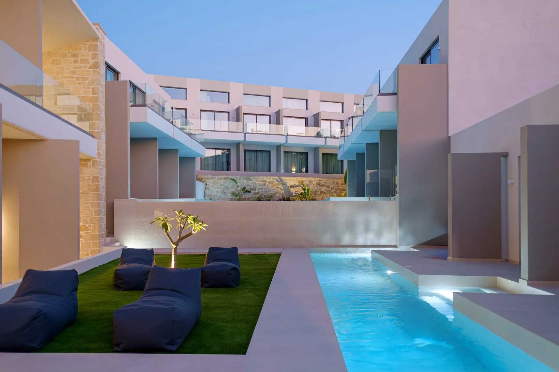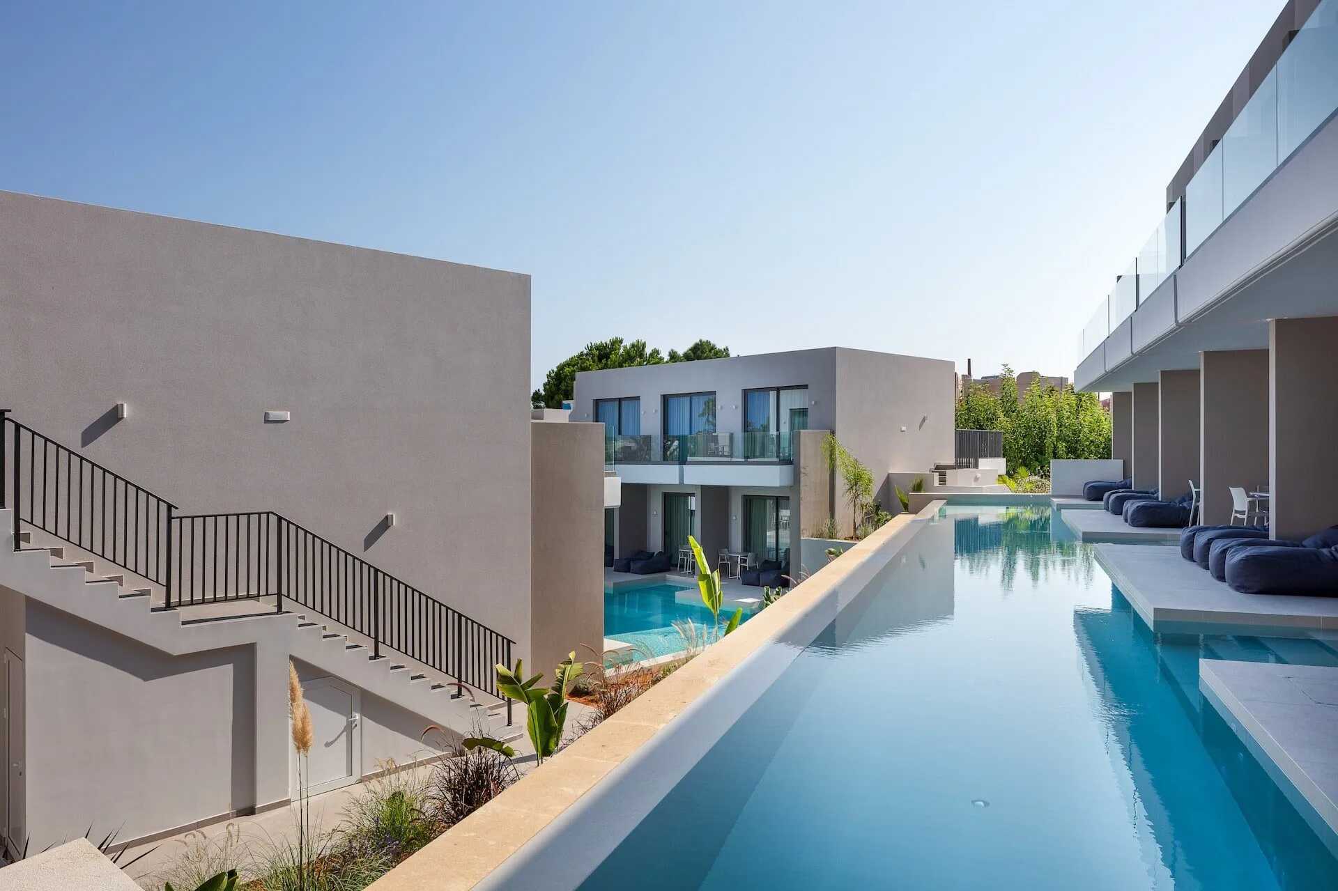Juniorsuite deluxe med terrasse og utgang til felles basseng. En dobbeltseng eller to enkeltsenger. Mulig med en ekstraseng i sovesofa. Wifi, luftkondisjonering og safe inkludert. Minibar. Vannkoker samt kaffe og te. Nespresso kaffemaskin, to kapsler inkludert ved ankomst, etterfylles mot avgift. Badekåper og tøfler Hårføner. Servant på rommet. Frostede glassvegger for dusj og wc. Rengjøring 7 ggr/uke.