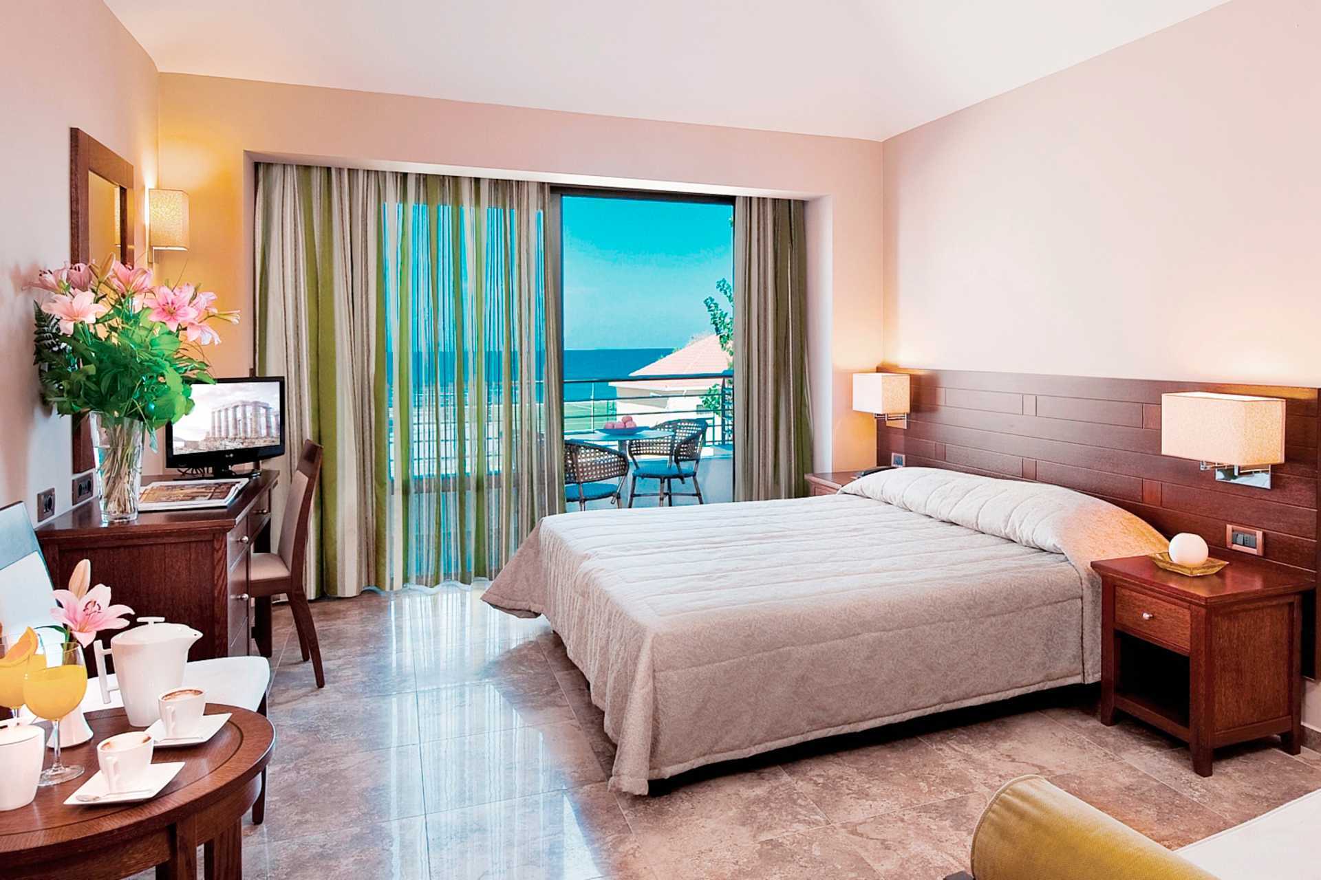 Dobbeltrom med balkong eller terrasse, noen med havutsikt eller begrenset havutsikt. En dobbeltseng eller to enkeltsenger. Mulig med ekstraseng i feltseng. Wifi og luftkondisjonering inkludert. Safe mot avgift. Kjøleskap. TV. Badekar eller dusj samt wc. Rengjøring 7 ggr/uke. Barn under 2 år regnes inn i maksantallet i rommet.