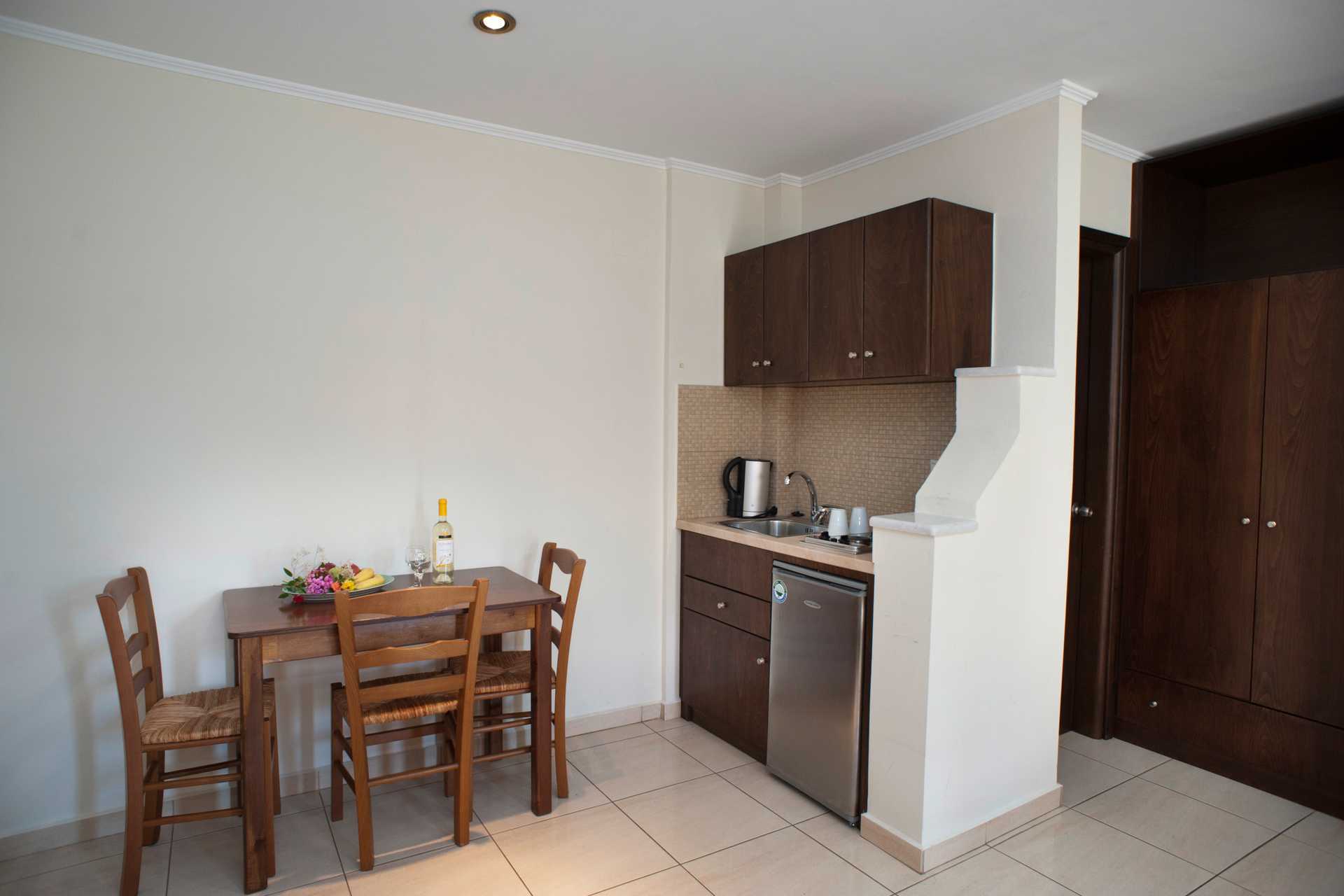 Ettromsleiligheter i varierende størrelser med balkong, uten balkong eller med delt uteplass. En av leilighetene har trapper inne i leiligheten. Minikjøkken. En dobbeltseng. Mulig med en ekstraseng i sovesofa. Minikjøkken med kjøleskap, kokeplater, kaffetrakter, vannkoker, sandwichgrill og enkelt kjøkkenutstyr. Luftkondisjonering og wifi inkludert. Safe mot avgift. TV. Baderom med dusj og wc. Rengjøring 6 ggr/uke.