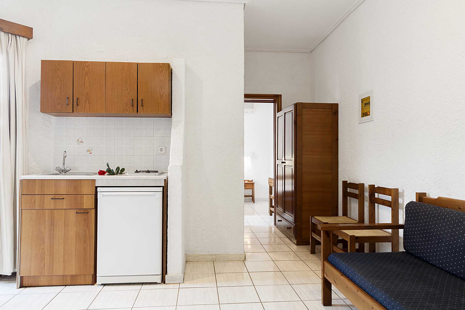 Treromsleiligheter i ulike størrelser med balkong. To soverom og en stue med minikjøkken. En dobbeltseng i det ene soverommet og to enkeltsenger i det andre. Mulig med ekstrasenger i to sovesofaer. Minikjøkken med kjøleskap, kokeplater, kaffetrakter, vannkoker, sandwichgrill og enkelt kjøkkenutstyr. Luftkondisjonering og wifi inkludert. Safe mot avgift. TV. Baderom med dusj og wc. Rengjøring 6 ggr/uke.