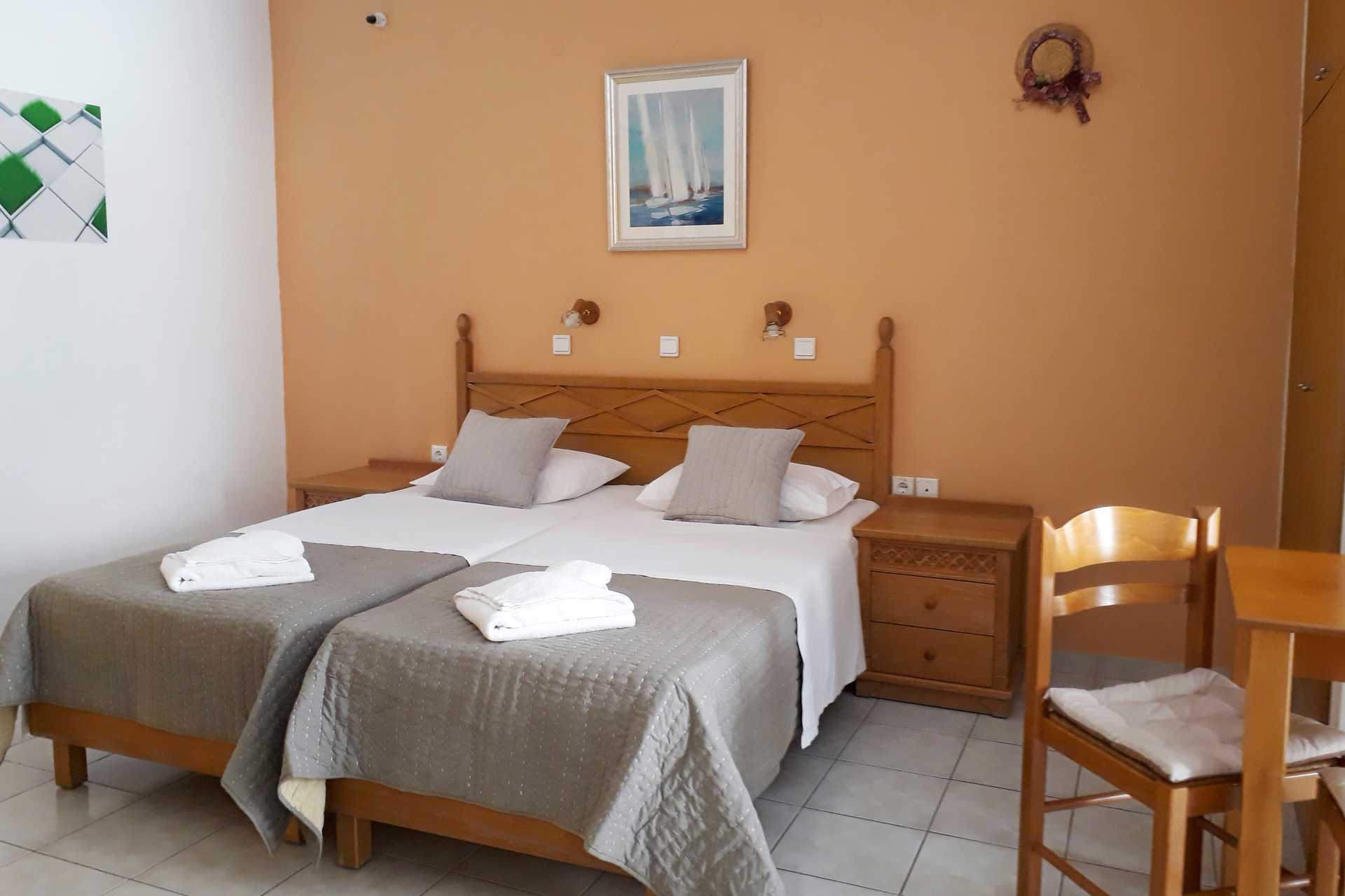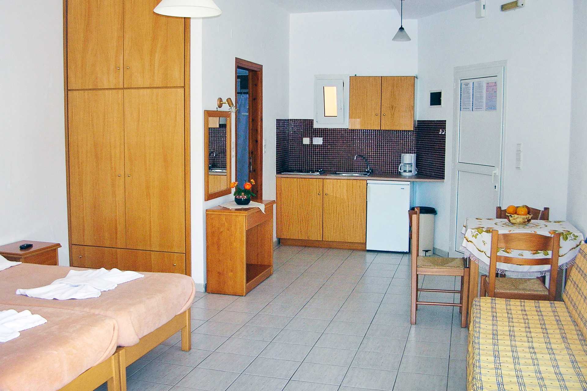 Ettromsleilighet med balkong. En av leilighetene har inngang via balkongen. Minikjøkken. To enkeltsenger. Mulig med en ekstraseng i sovesofa. Minikjøkken med kokeplater, kjøleskap, vannkoker, kaffetrakter og enkelt kjøkkenutstyr. Wifi inkludert. Luftkondisjonering og safe mot avgift. TV. Hårføner. Baderom med dusj og wc. Rengjøring 6 ggr/uke.