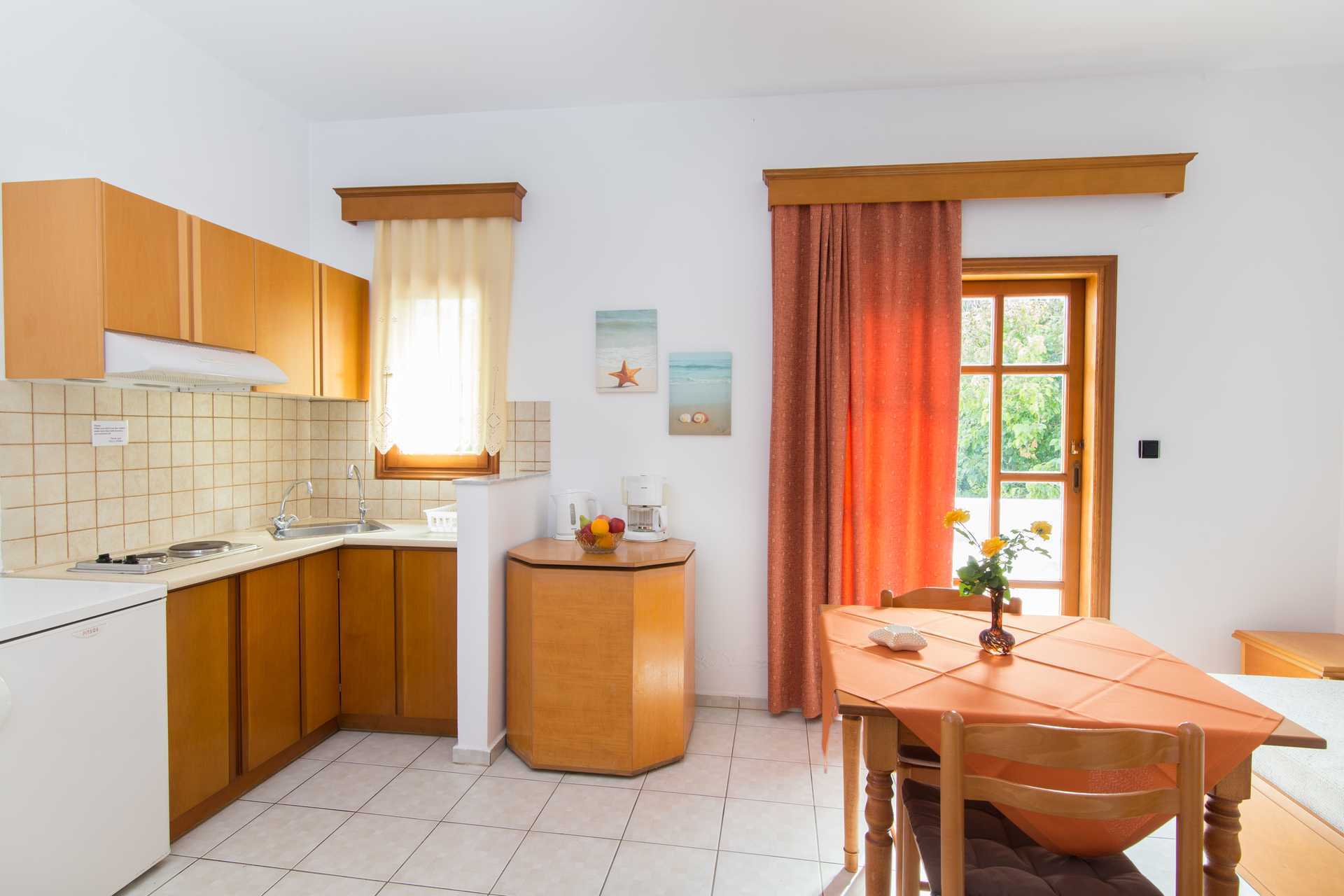 Toromsleilighet med balkong og bassengutsikt. Leilighetene er i varierende størrelse. Et soverom og en stue med minikjøkken. En dobbeltseng. Mulig med ekstrasenger i sovesofa. Minikjøkken med kokeplater, kjøleskap, kaffetrakter, vannkoker og enkelt kjøkkenutstyr. Wifi inkludert. Luftkondisjonering og safe mot avgift. TV. Hårføner. Baderom med dusj og wc. Rengjøring 6 ggr/uke.