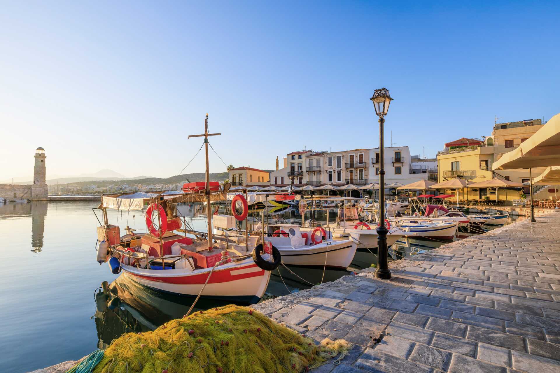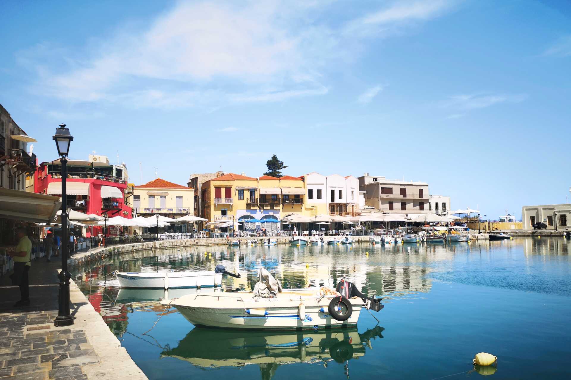 Rethymnons lille fiskehavn er som tatt ut av en vakker opera fra Middelhavet. Den har bevart sin sjarm og skjønnhet siden den ble bygget av venetianerne på 1200-tallet. Her speiler de gamle husfasadene seg i det stille vannet mens fargerike fiskebåter hviler side om side.
