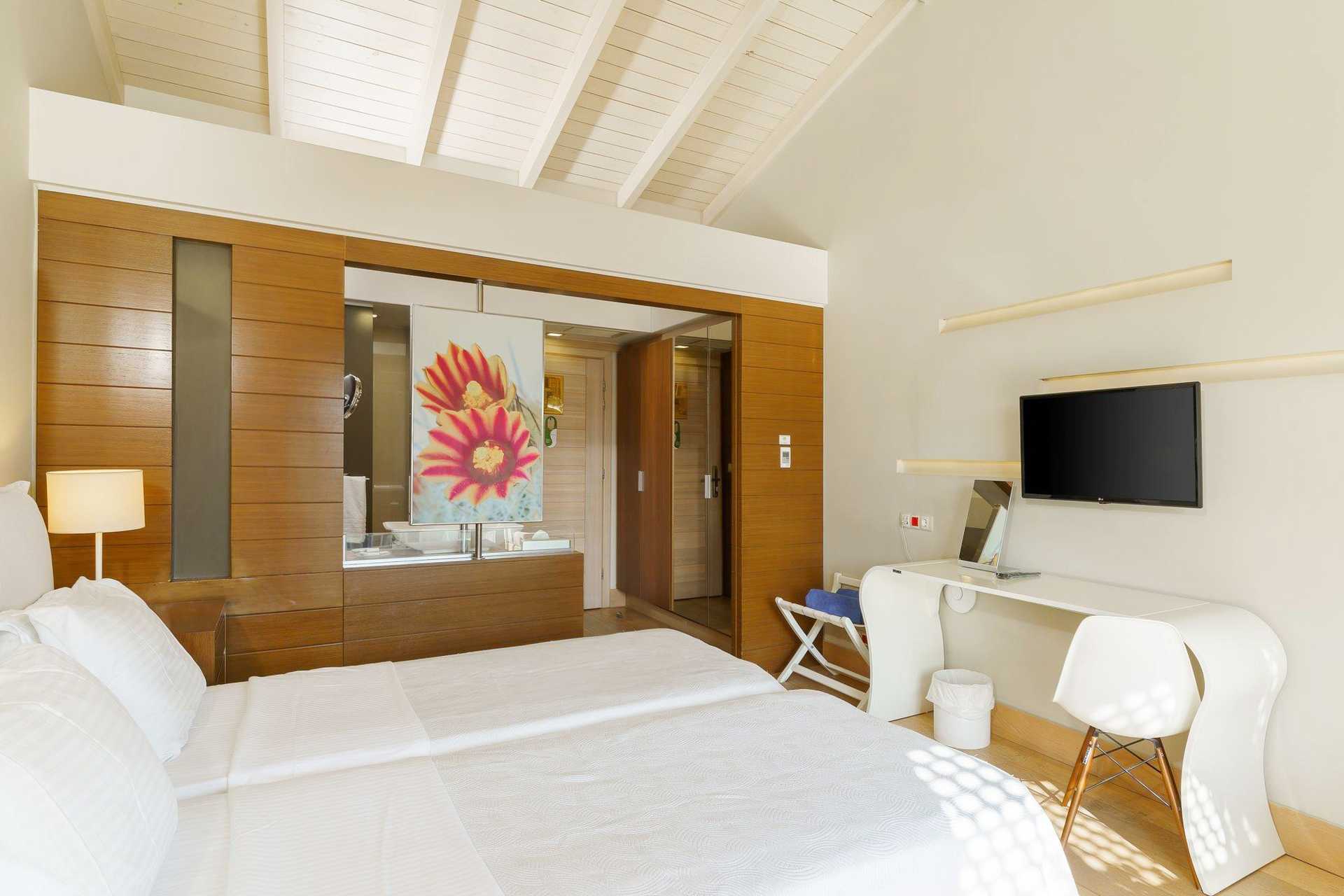 Dobbeltrom med markterrasse og havutsikt og eget basseng. På markterrasse er det bord og stoler samt solsenger. En dobbeltseng eller to enkeltsenger. Wifi, luftkondisjonering og safe inkludert. Kjøleskap. Vannkoker samt kaffe og te. TV. Myggnetting. Badekåper og tøfler Hårføner. Dusj og wc. I noen rom er badene åpne mot rommet, dusj og wc har dører. Rengjøring 7 ggr/uke.
