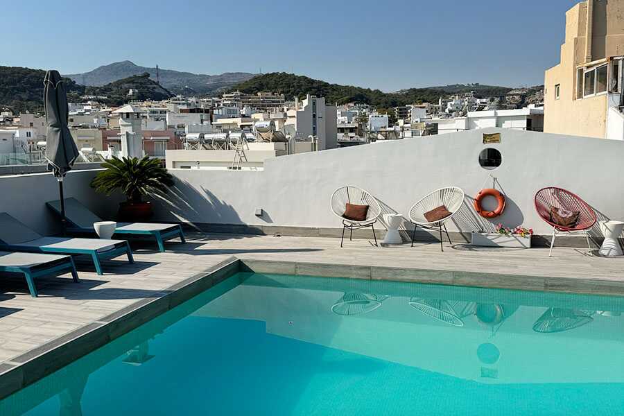 Takterassen med bassen. Meget bra