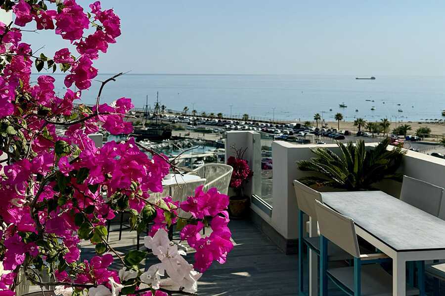 Takterrassen og nær strand og gamlebyen