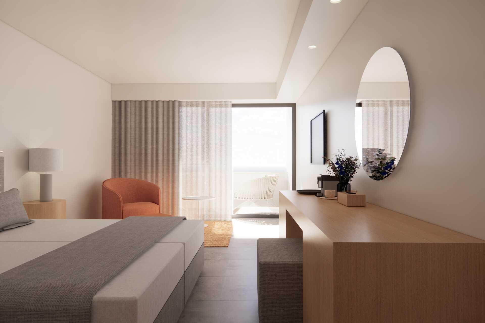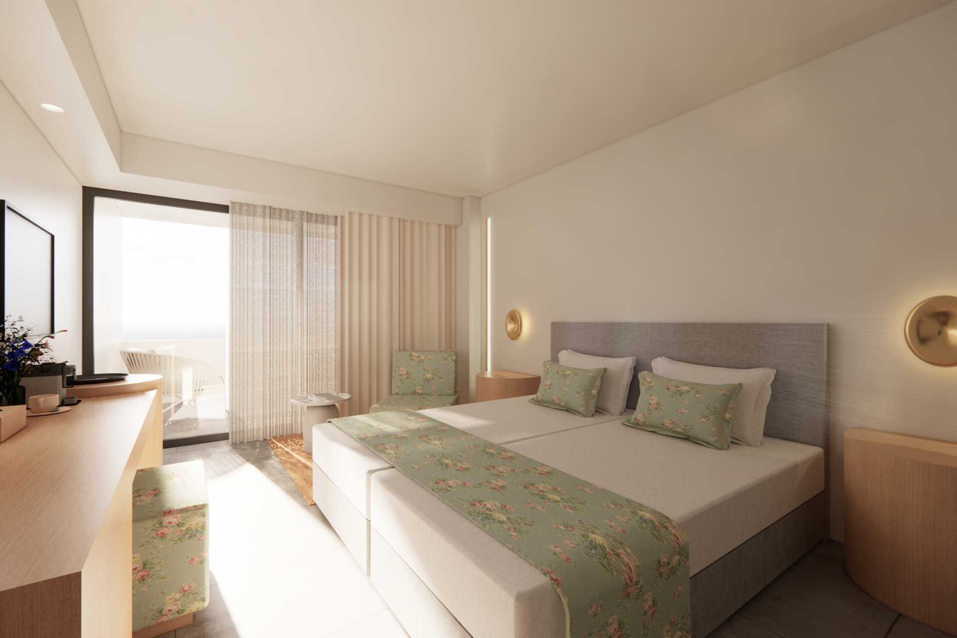 Dobbeltrom med balkong. Noen rom er booket med havutsikt, begrenset havutsikt eller bassengutsikt. En dobbeltseng eller to enkeltsenger. Mulig med ekstraseng i enkeltseng. Wifi, luftkondisjonering og safe inkludert. Minibar. Vannkoker samt kaffe og te. TV. Hårføner. Tøfler. Badekar eller dusj samt wc. Rengjøring 7 ggr/uke.
