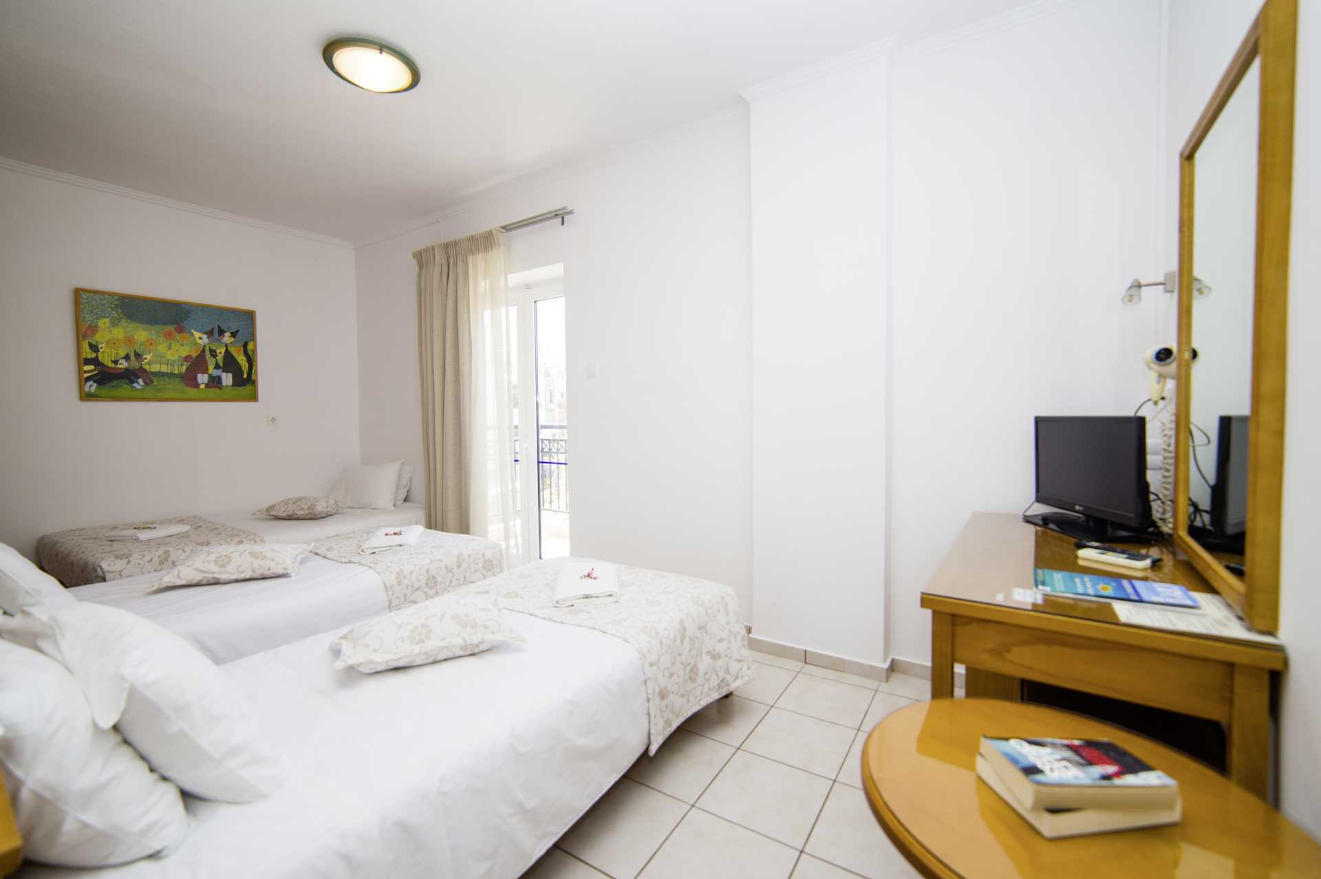 Dobbeltrom med balkong. En dobbeltseng eller to enkeltsenger. Mulig med ekstraseng i feltseng. Wifi og luftkondisjonering er inkludert. Safe mot avgift. Kjøleskap. TV. Hårføner. Badekar eller dusj samt wc. Rengjøring 6 ggr/uke. Barn under 2 år regnes inn i maksantallet i rommet.
