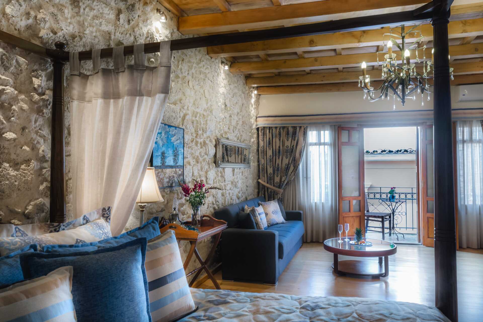 Suiter med balkong eller terrasse. En dobbeltseng. Mulig med ekstrasenger. Wifi, safe og luftkondisjonering inkludert. Velkomstbrikke ved ankomst med lokale produkter. Minibar med lokale forfriskninger. TV. Badekåper og tøfler. Jacuzzi eller massasjedusj og wc. Rengjøring 7 ggr/uke.