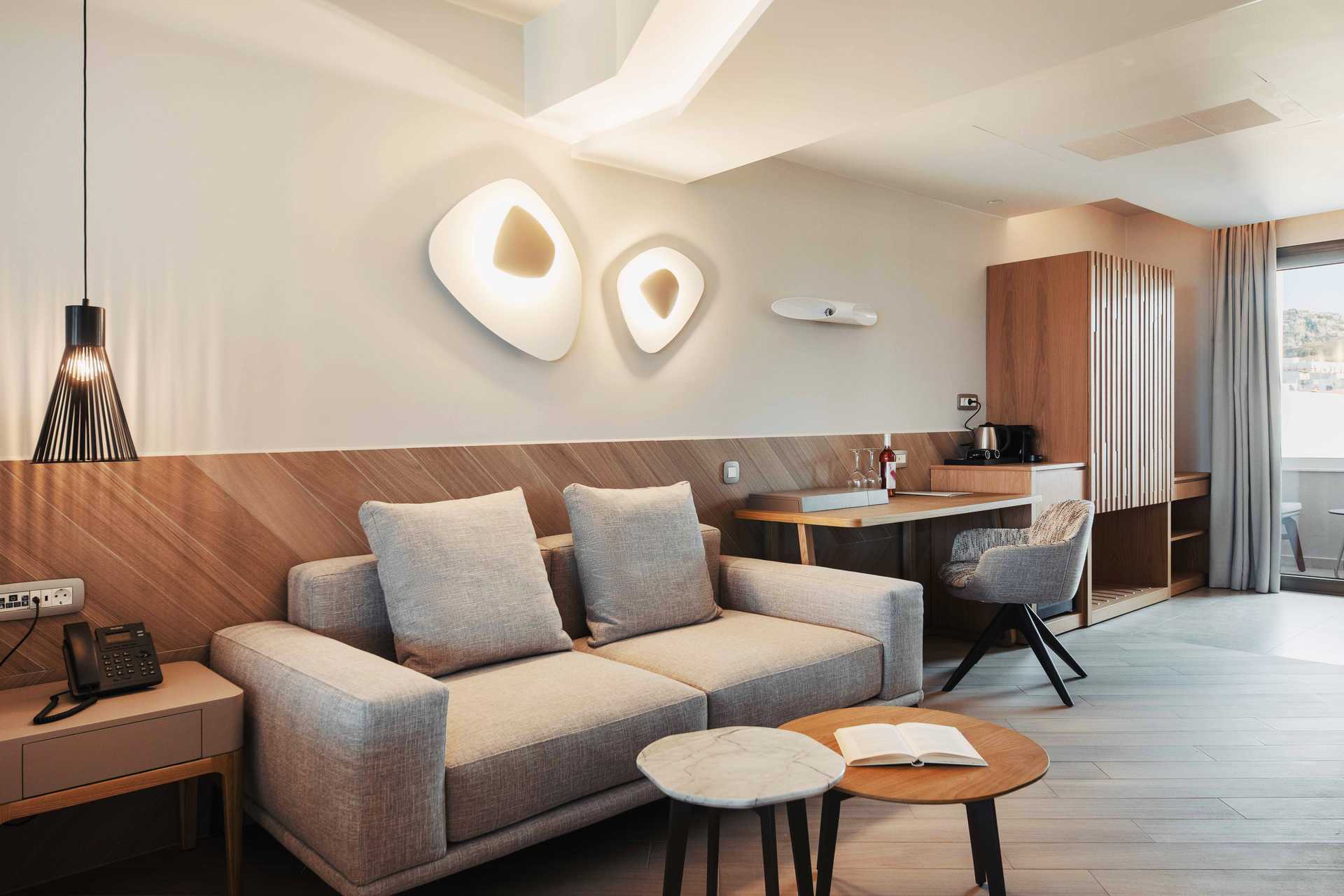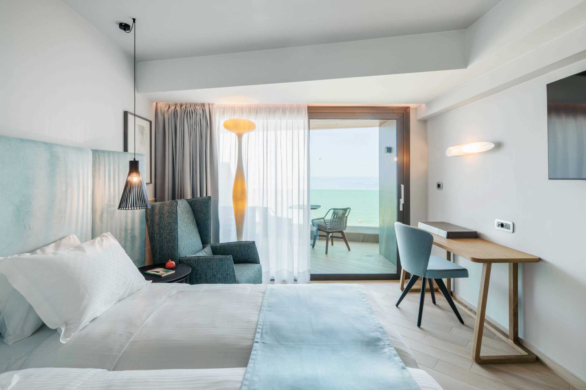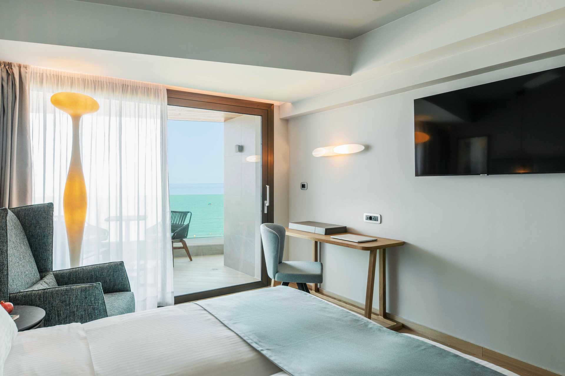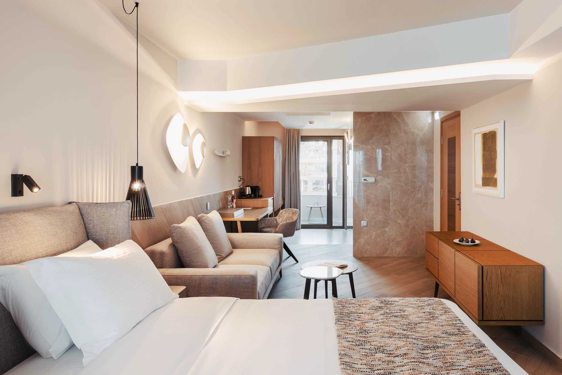 Juniorsuite Premium med havutsikt og romslig balkong på cirka 15 kvadratmeter. En dobbeltseng eller to enkeltsenger. Wifi, luftkondisjonering og wifi inkludert. Espressomaskin, kapsler inkludert. Vannkoker samt kaffe og te. Kjøleskap. En flaske vin, en flaske vann og frisk frukt venter ved ankomst. TV. Strykejern og strykebrett. Badekåper og tøfler Hårføner. Dusj og wc. Rengjøring 7 ggr/uke.