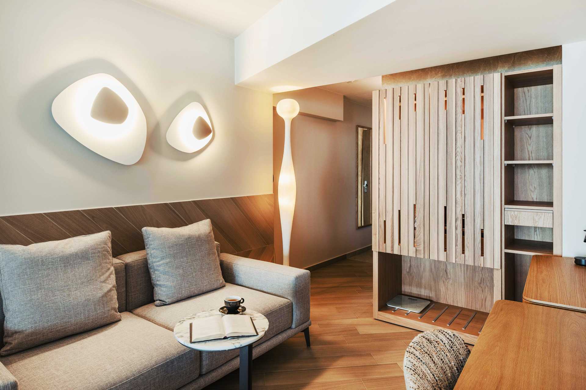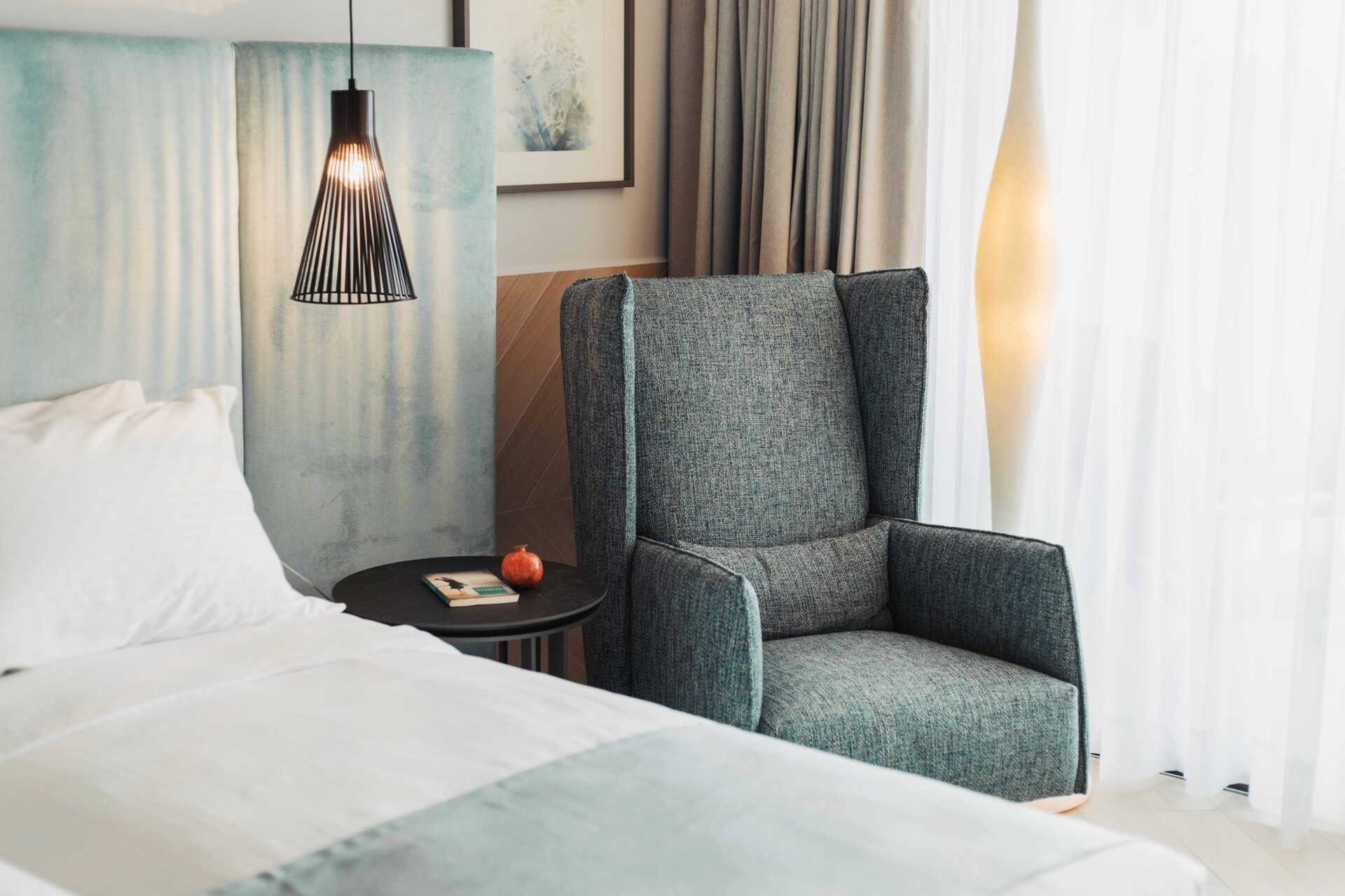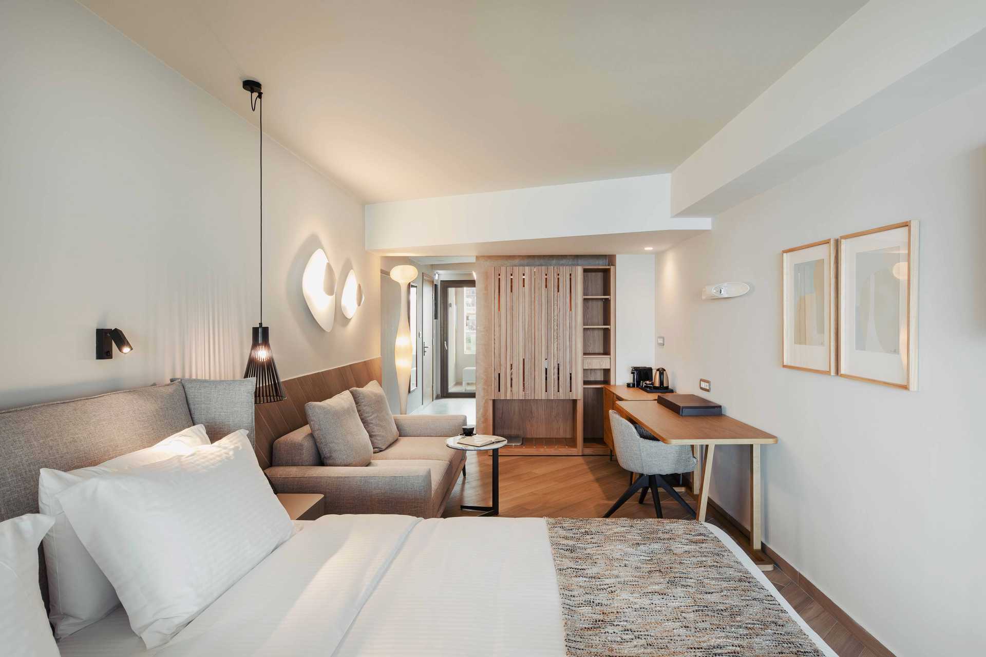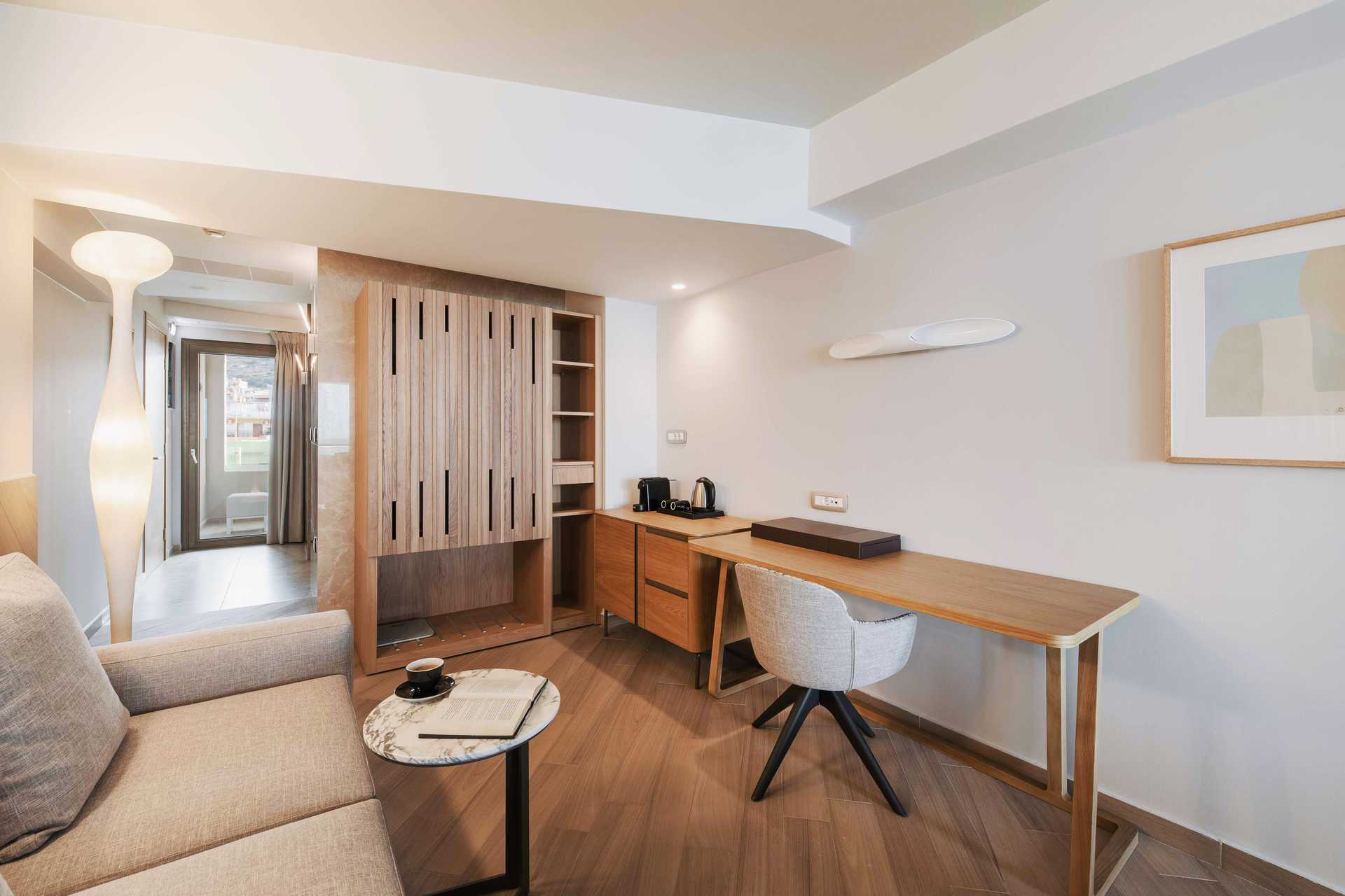 Juniorsuite Premium med havutsikt og romslig balkong på cirka 15 kvadratmeter. En dobbeltseng eller to enkeltsenger. Wifi, luftkondisjonering og wifi inkludert. Espressomaskin, kapsler inkludert. Vannkoker samt kaffe og te. Kjøleskap. En flaske vin, en flaske vann og frisk frukt venter ved ankomst. TV. Strykejern og strykebrett. Badekåper og tøfler Hårføner. Dusj og wc. Rengjøring 7 ggr/uke.