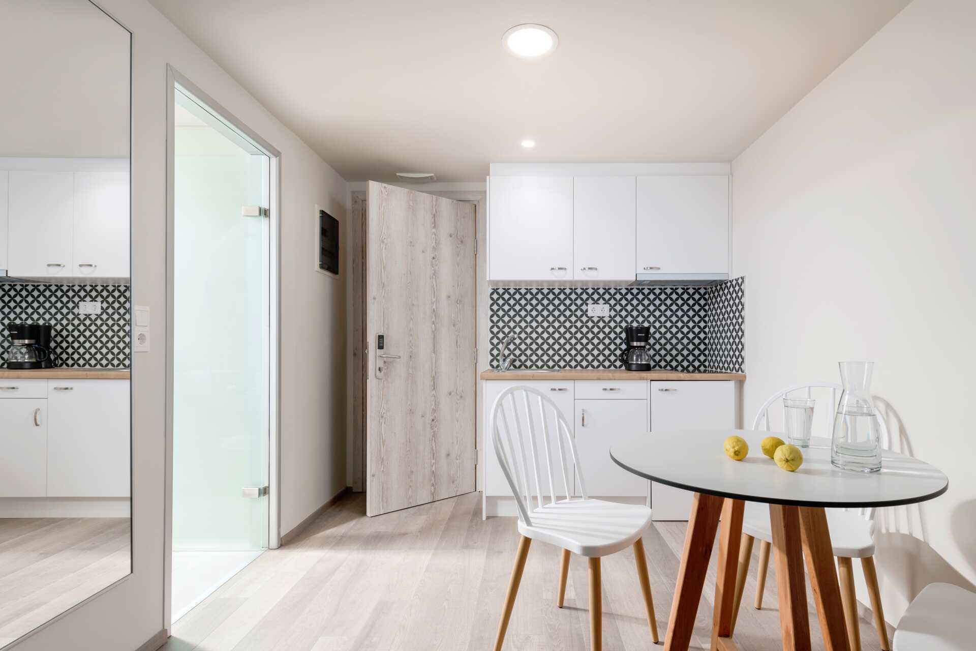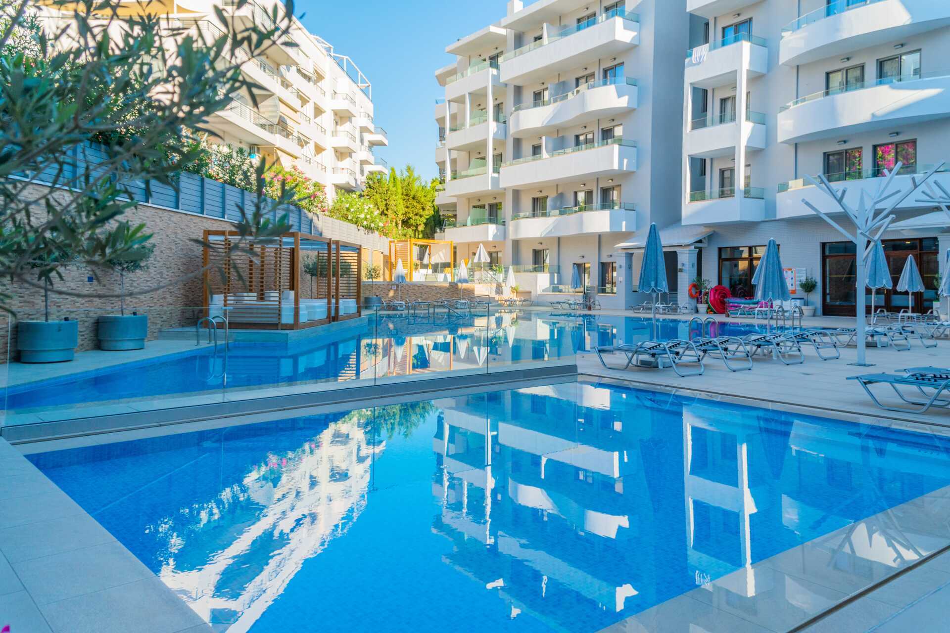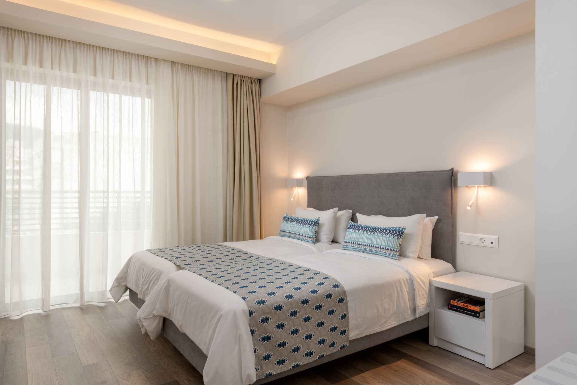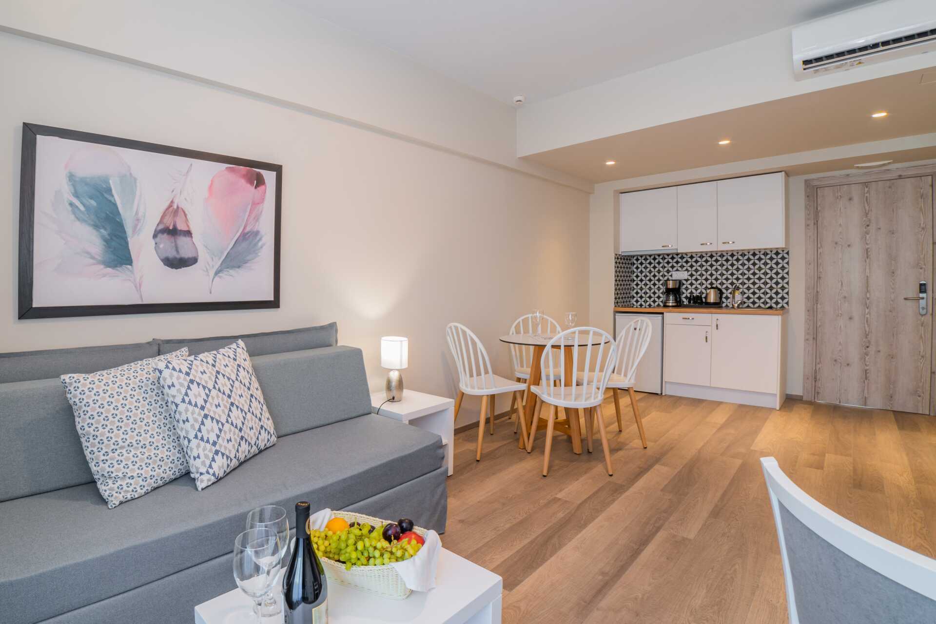 Ettromsleilighet Superior med balkong, noen med bassengutsikt. Minikjøkken. To enkeltsenger. Mulig med en ekstraseng i sovesofa. Minikjøkken med kokeplater, kjøleskap, mikrobølgeovn, vannkoker, brødrister, kaffetrakter og enkelt kjøkkenutstyr. Daglig påfyll av kaffe og te. Ved ankomst venter en flaske vin, en flaske vann og frukt i leiligheten. Luftkondisjonering og wifi inkludert. Safe mot avgift. TV. Badekåper og tøfler. Hårføner. Dusj og wc. Rengjøring 6 ggr/uke.