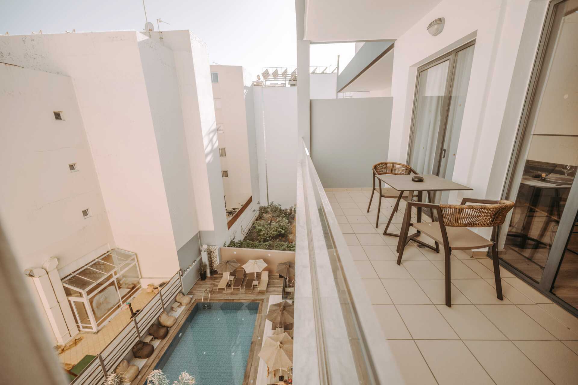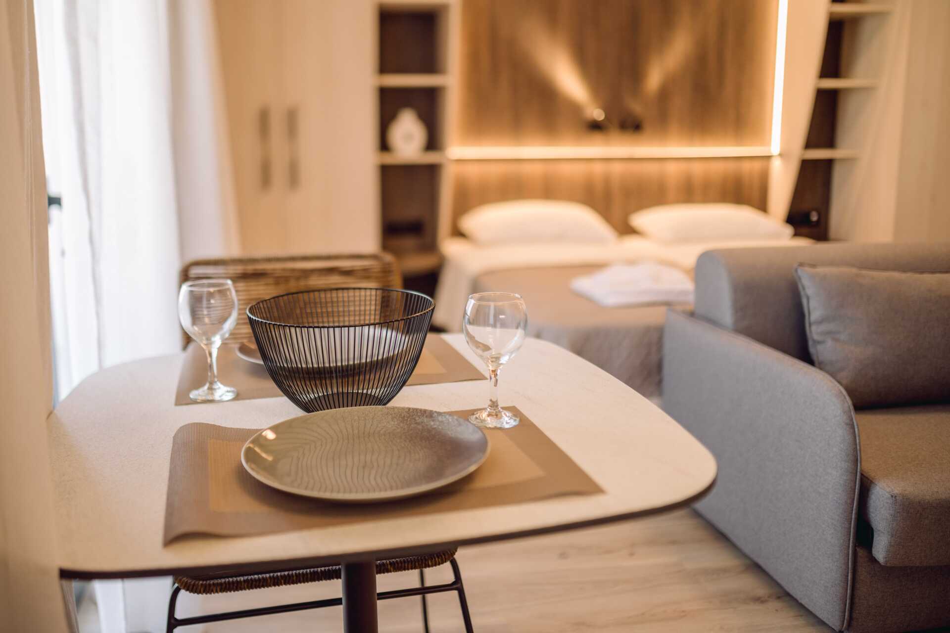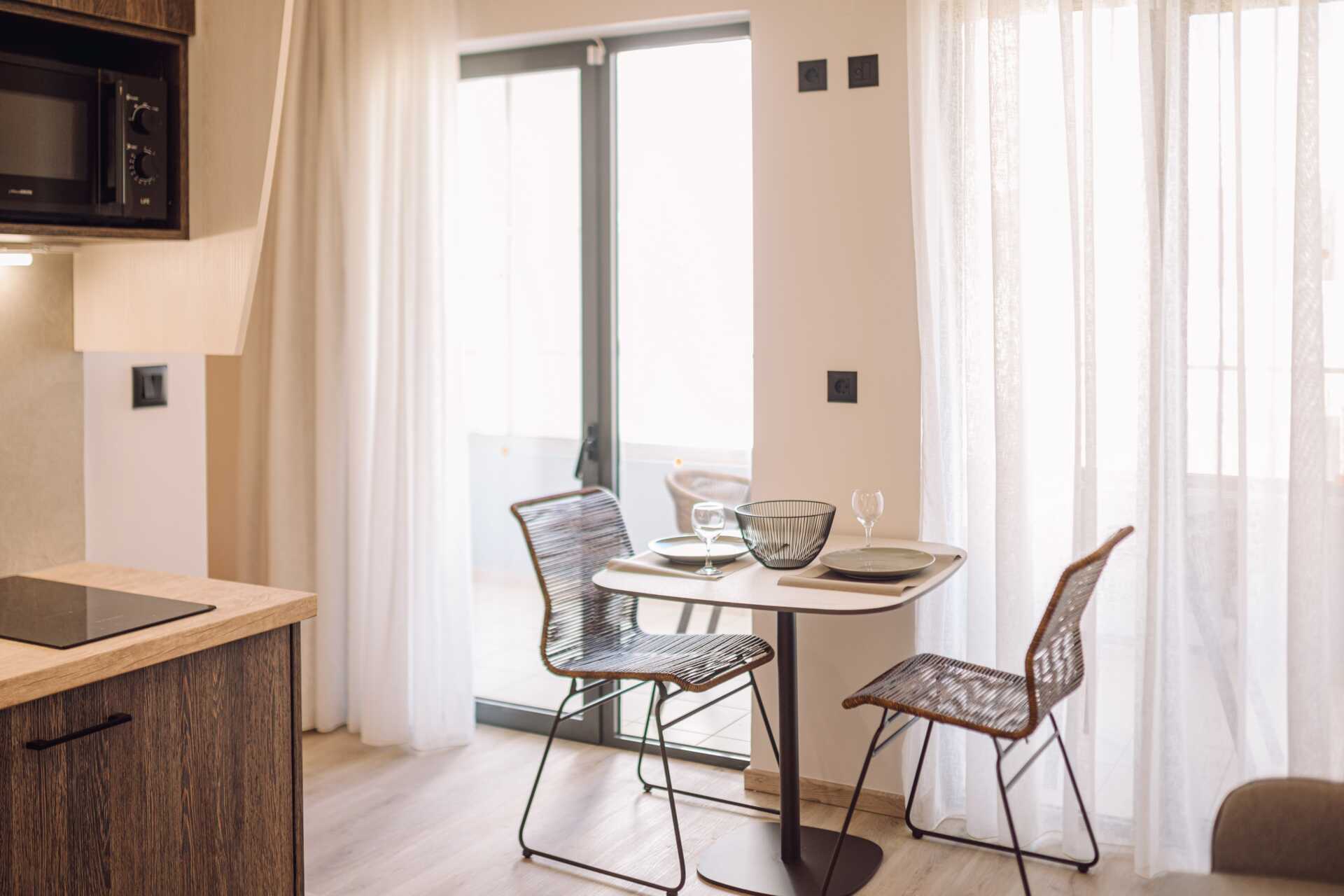 Toromsleilighet superior med balkong og havutsikt. Et soverom og stue med minikjøkken. En dobbeltseng. Mulig med ekstraseng i enkeltseng eller en sovesofa til to personer. Minikjøkken med kjøleskap, kokeplater, kaffetrakter eller vannkoker, brødrister og enkelt kjøkkenutstyr. Wifi og luftkondisjonering er inkludert. Safe mot avgift. TV med lokale kanaler. Hårføner. Bad med dusj og wc. Rengjøring 6 ggr/uke. I rom for opptil tre personer regnes barn under to år inn i maksantallet i rommet.