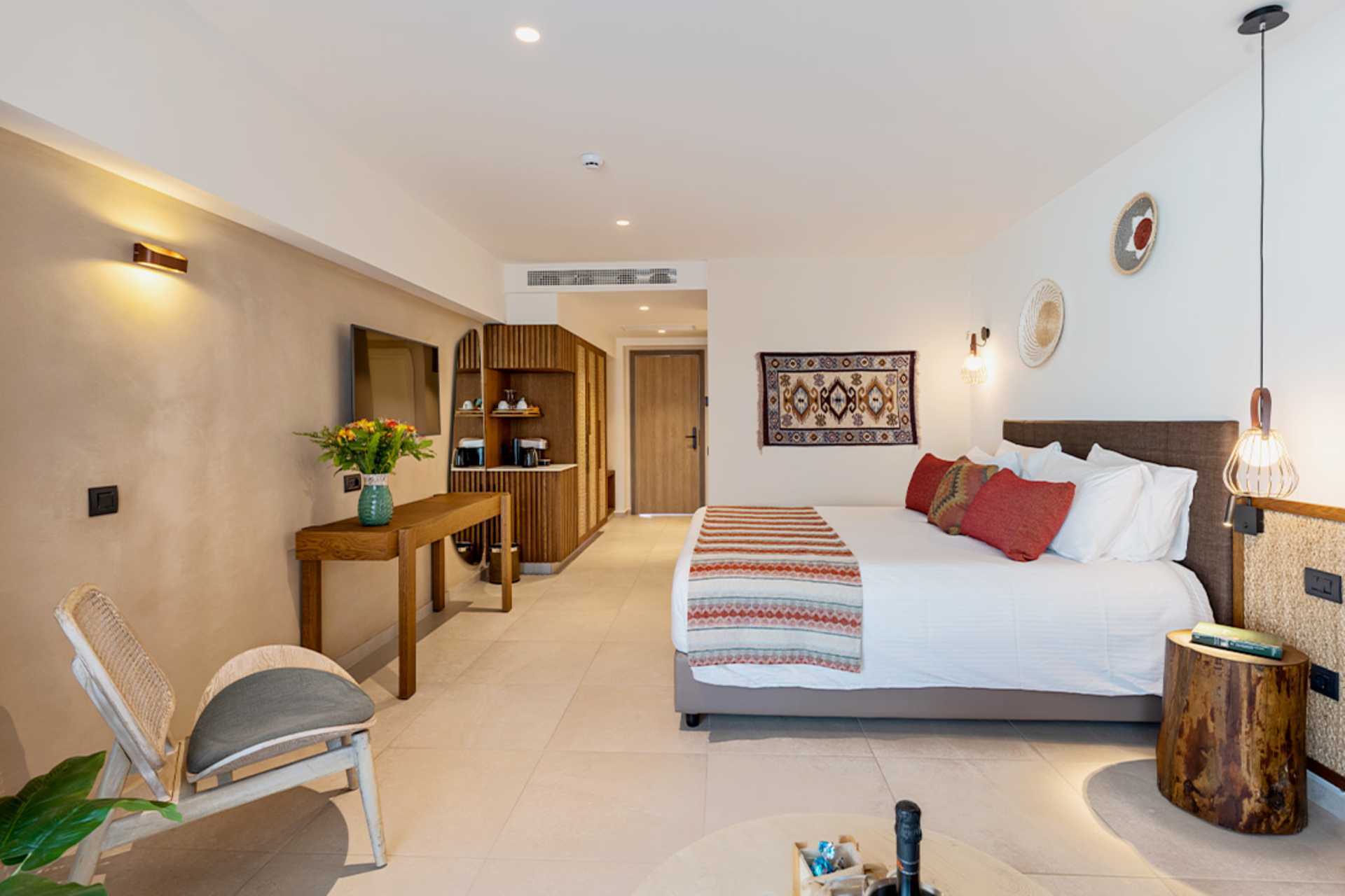 Deluxesuite med balkong. En dobbeltseng. Mulig med en ekstraseng i sovesofa. Putemeny. Wifi, luftkondisjonering og safe inkludert. Kjøleskap. Nespresso kaffemaskin, kapsler inkludert ved ankomst. Vannkoker samt kaffe og te. Musserende vin, en flaske vann og frukt ved ankomst. TV. Badekåper og tøfler Strykejern og strykebrett. Basseng- og strandhåndklær Hårføner. Dusj og wc. Rengjøring 7 ggr/uke.