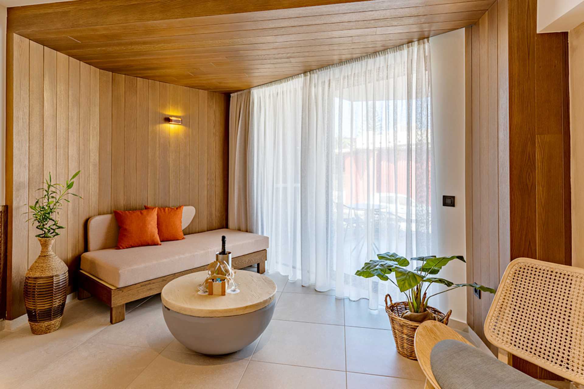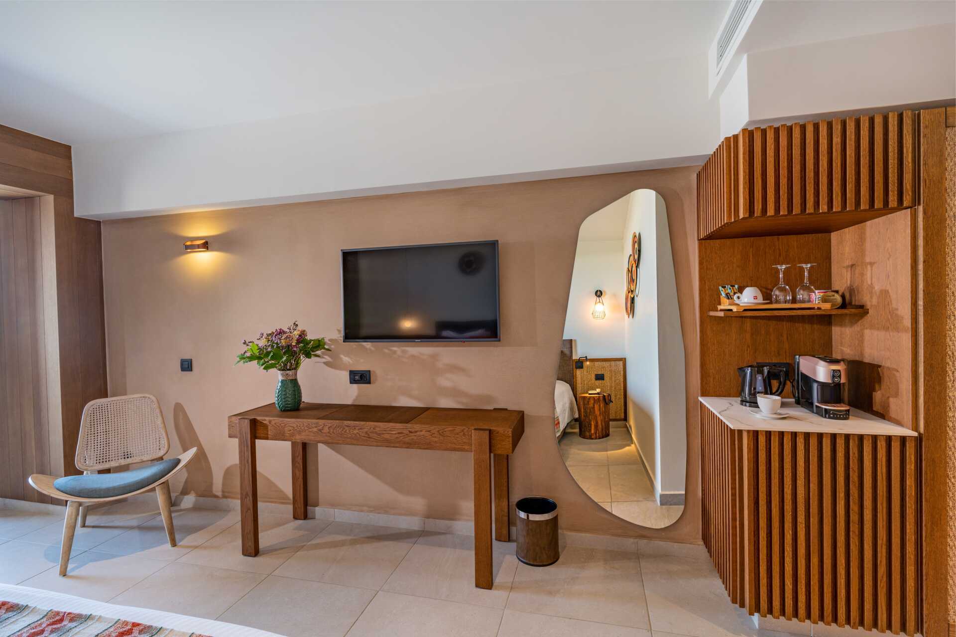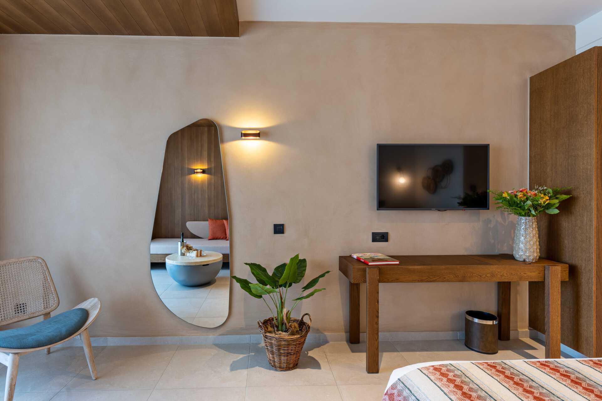 Juniorsuite med balkong. En dobbeltseng. Putemeny. Wifi, luftkondisjonering og safe inkludert. Kjøleskap. Nespresso kaffemaskin, kapsler inkludert ved ankomst. Vannkoker samt kaffe og te. Musserende vin, en flaske vann og frukt ved ankomst. TV. Badekåper og tøfler Strykejern og strykebrett. Basseng- og strandhåndklær Hårføner. Dusj og wc. Rengjøring 7 ggr/uke.
