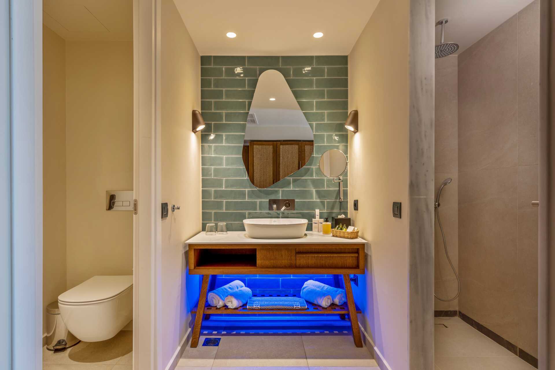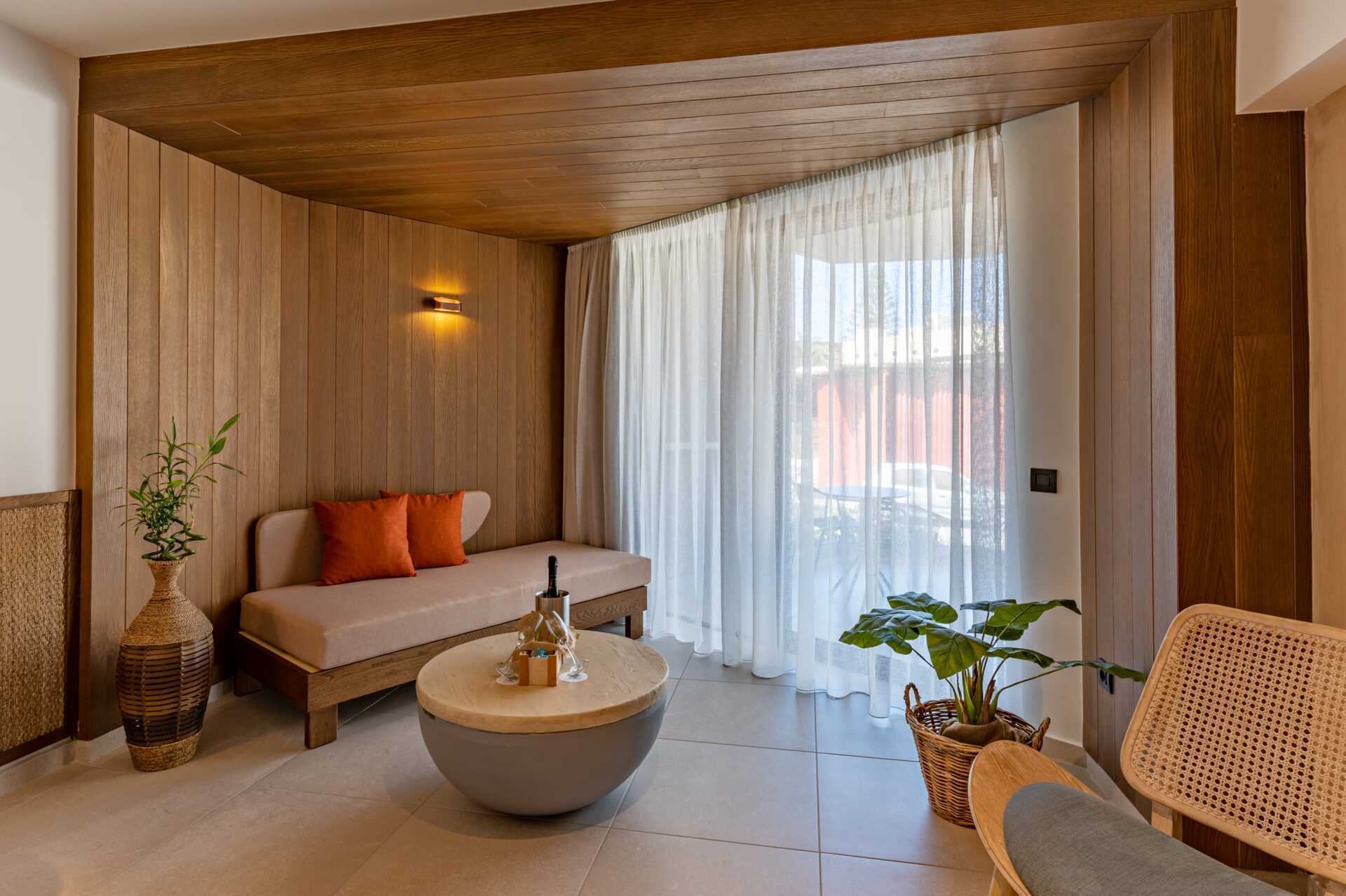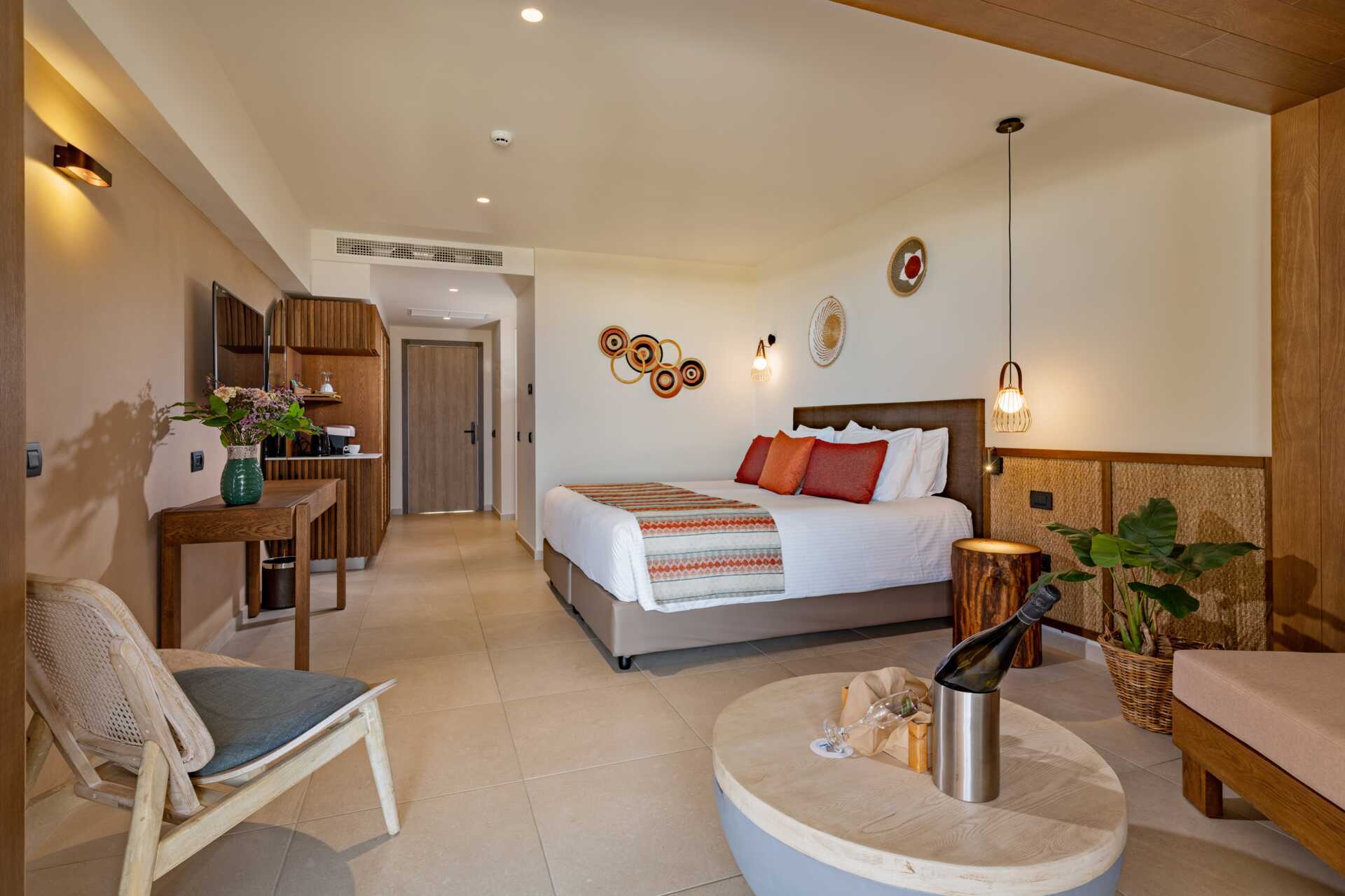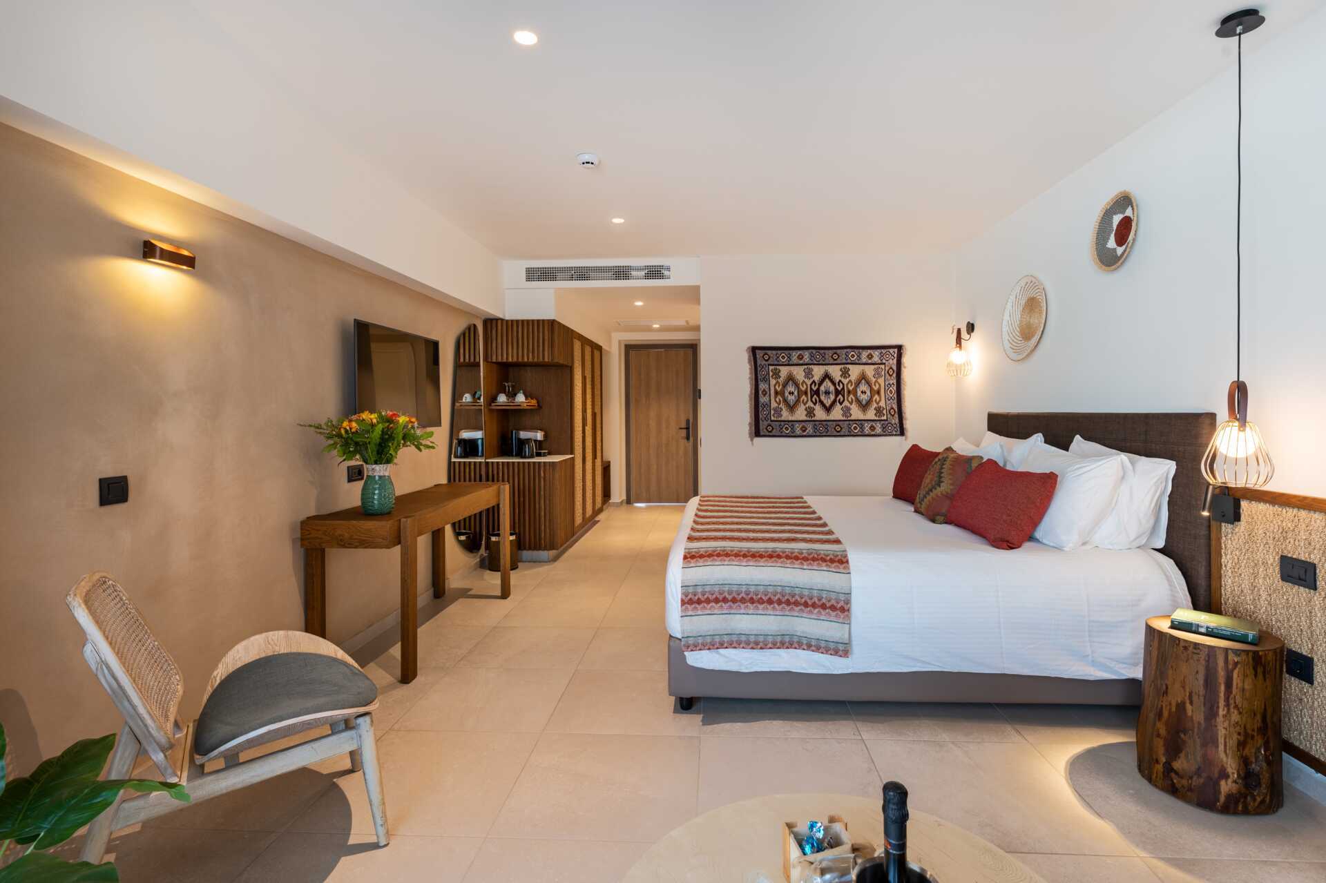 Juniorsuite med balkong. En dobbeltseng. Putemeny. Wifi, luftkondisjonering og safe inkludert. Kjøleskap. Nespresso kaffemaskin, kapsler inkludert ved ankomst. Vannkoker samt kaffe og te. Musserende vin, en flaske vann og frukt ved ankomst. TV. Badekåper og tøfler Strykejern og strykebrett. Basseng- og strandhåndklær Hårføner. Dusj og wc. Rengjøring 7 ggr/uke.