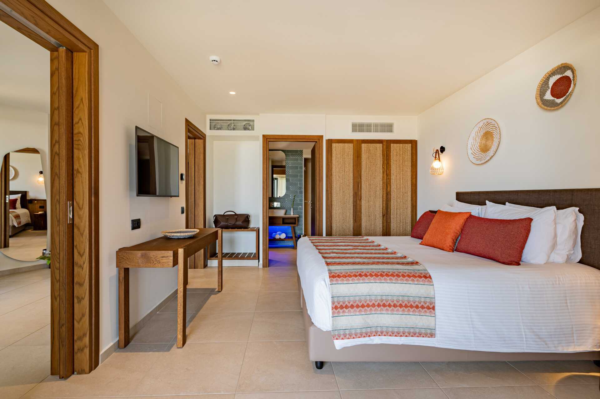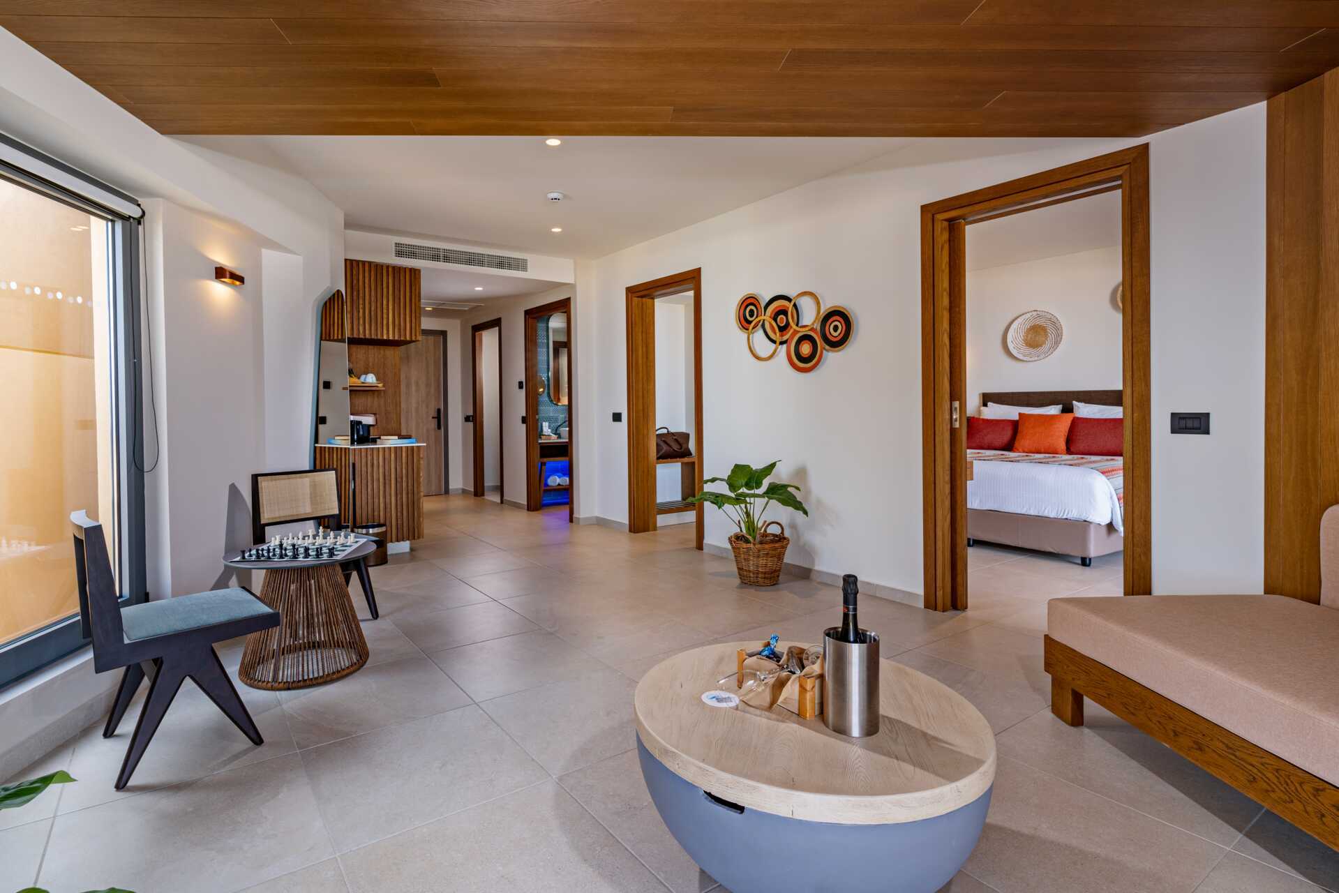 Suite med to balkonger. Suiten består av et soverom og en stue. En dobbeltseng. Mulig med en ekstraseng i sovesofa. Putemeny. Wifi, luftkondisjonering og safe inkludert. Minibar, etterfylles en gang per uke. Nespresso kaffemaskin, kapsler inkludert. Vannkoker samt kaffe og te. Musserende vin, en flaske vann og frukt ved ankomst. TV. Badekåper og tøfler Strykejern og strykebrett. Basseng- og strandhåndklær Hårføner. Dusj eller badekar samt wc. Rengjøring 7 ggr/uke.