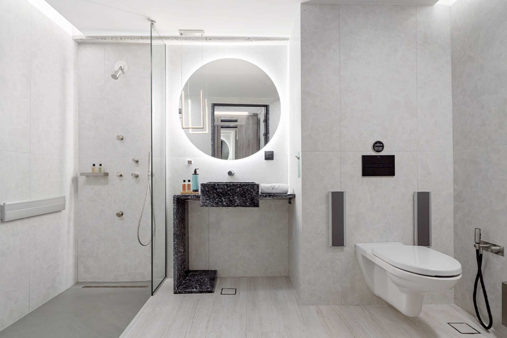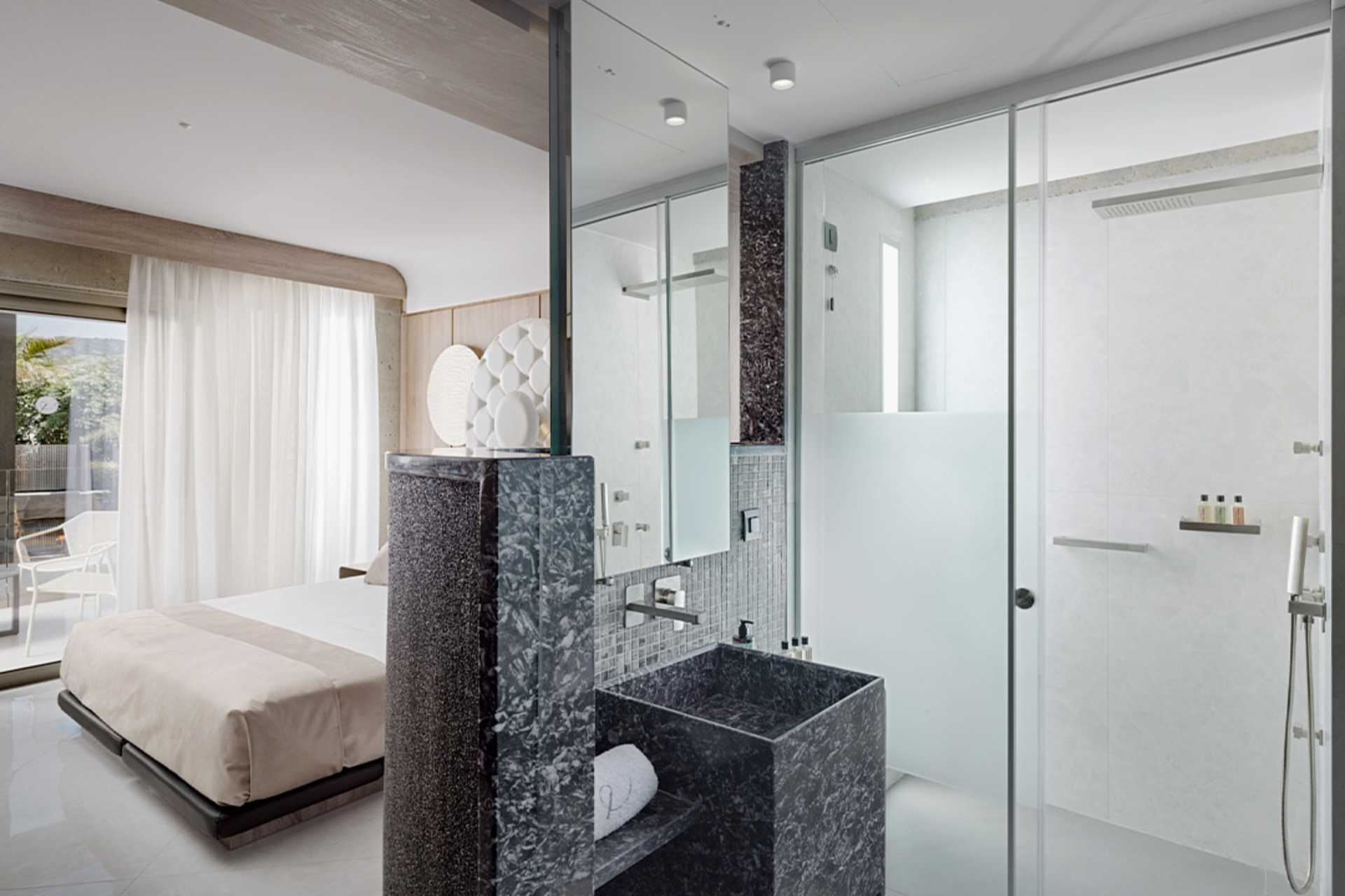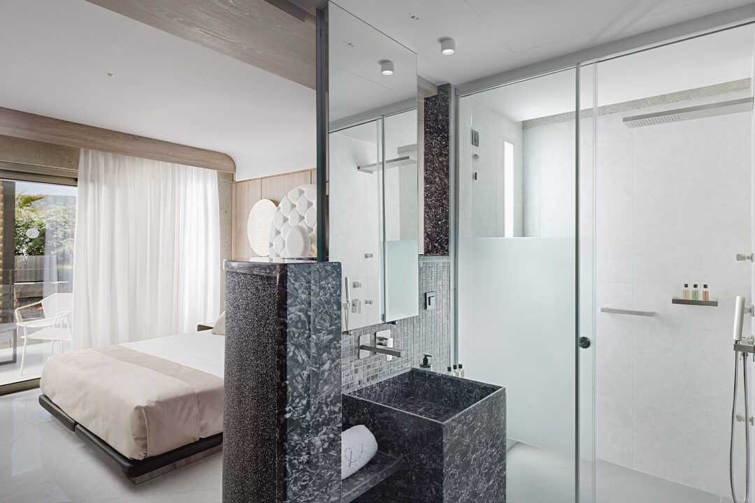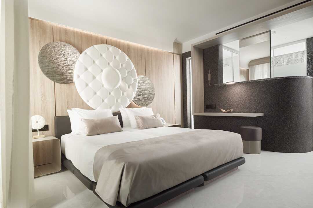 Toromssuiter i etasje med stor balkong, boblebad og havutsikt. Nede er det stue med sovesofa og bad, en trapp opp er det soverom med en dobbeltseng. Putemeny. Wifi, luftkondisjonering og safe inkludert. Minibar. Vannkoker samt kaffe og te. TV. Hårføner. Badekåper og tøfler. Bad med badekar eller dusj og separat wc. Rengjøring 7 ggr/uke.