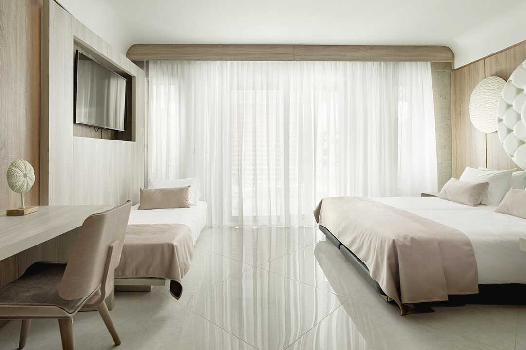 Superiorrom med balkong. En dobbeltseng eller to enkeltsenger og en tredje seng i en sovesofa. Putemeny. Wifi, luftkondisjonering og safe er inkludert. Minibar. Nespresso kaffemaskin. TV. Badekåper og tøfler. Hårføner. Dusj og wc. Rengjøring 7 ggr/uke.
