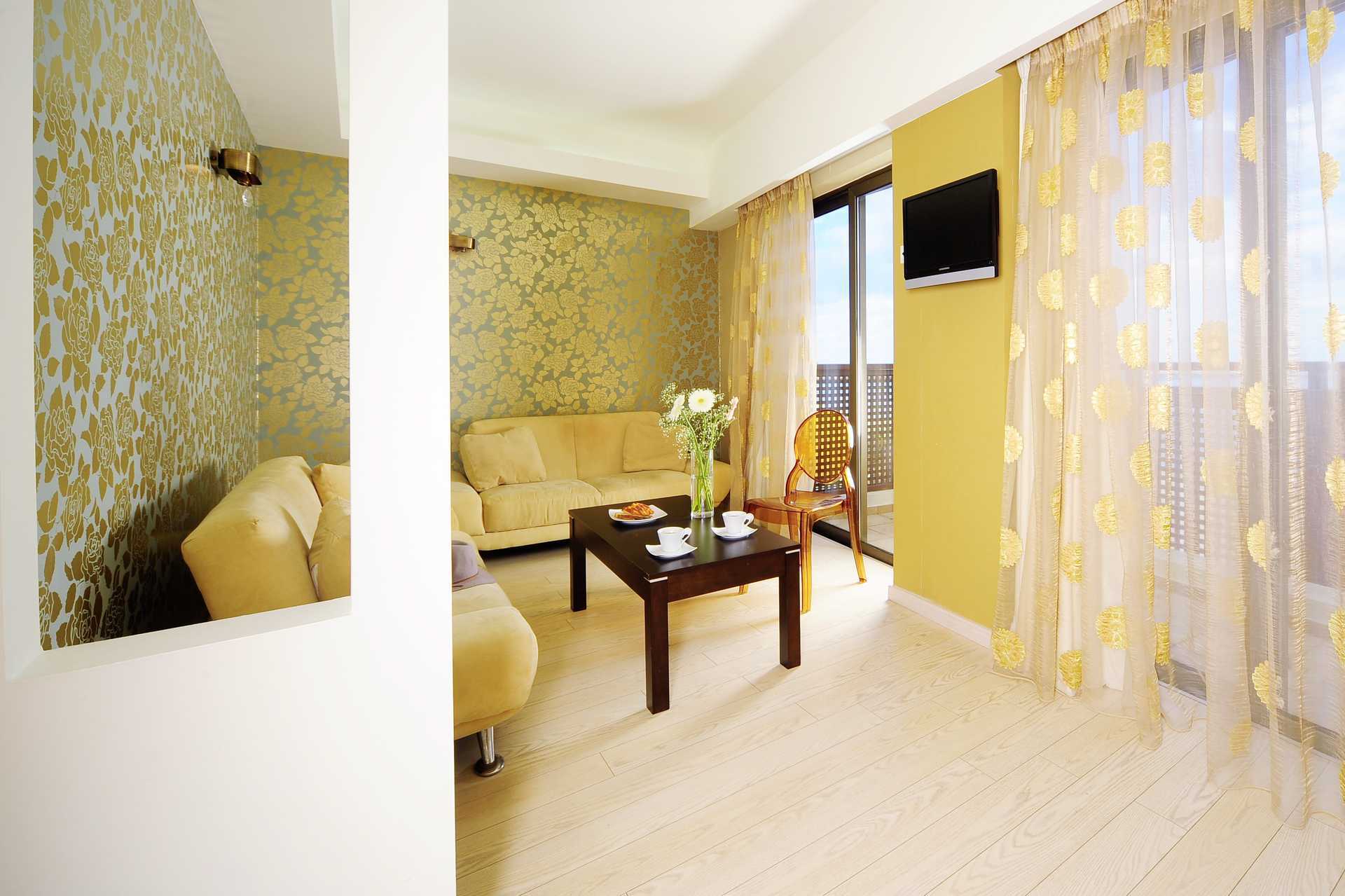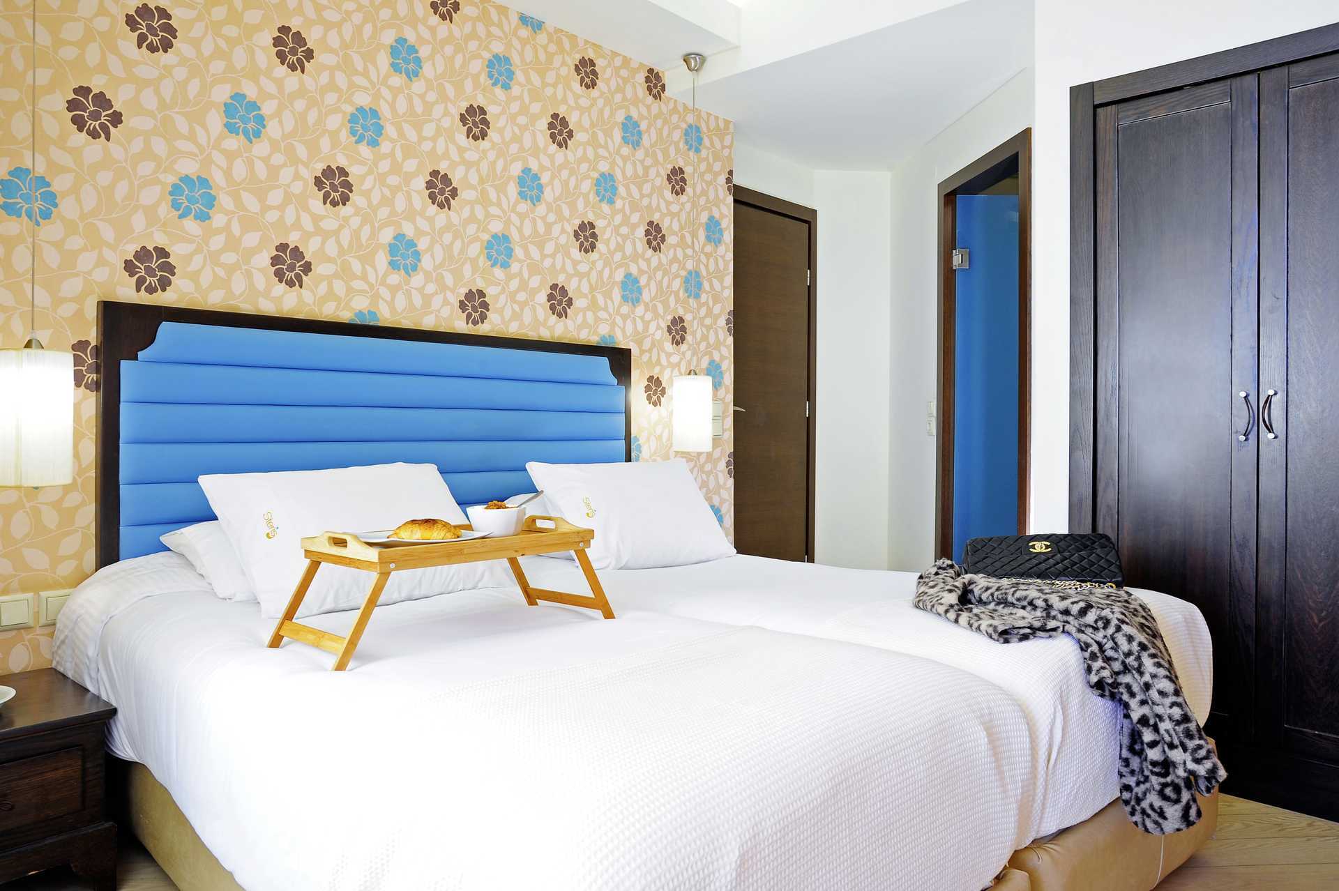 Toromsleilighet superior med balkong og havutsikt. Balkongene varierer i størrelse. Et soverom og en stue med minikjøkken. En dobbeltseng eller to enkeltsenger. Mulig med ekstrasenger i sovesofa. Minikjøkken med kokeplater, kjøleskap, vannkoker og enkelt kjøkkenutstyr. Nespresso kaffemaskin, to kapsler inkludert ved ankomst, etterfylles mot avgift. Wifi og luftkondisjonering er inkludert. Safe mot avgift. TV. Hårføner. Badekåper og tøfler. To bad, ett med dusj og wc og ett med badekar og wc. Rengjøring 6 ggr/uke.