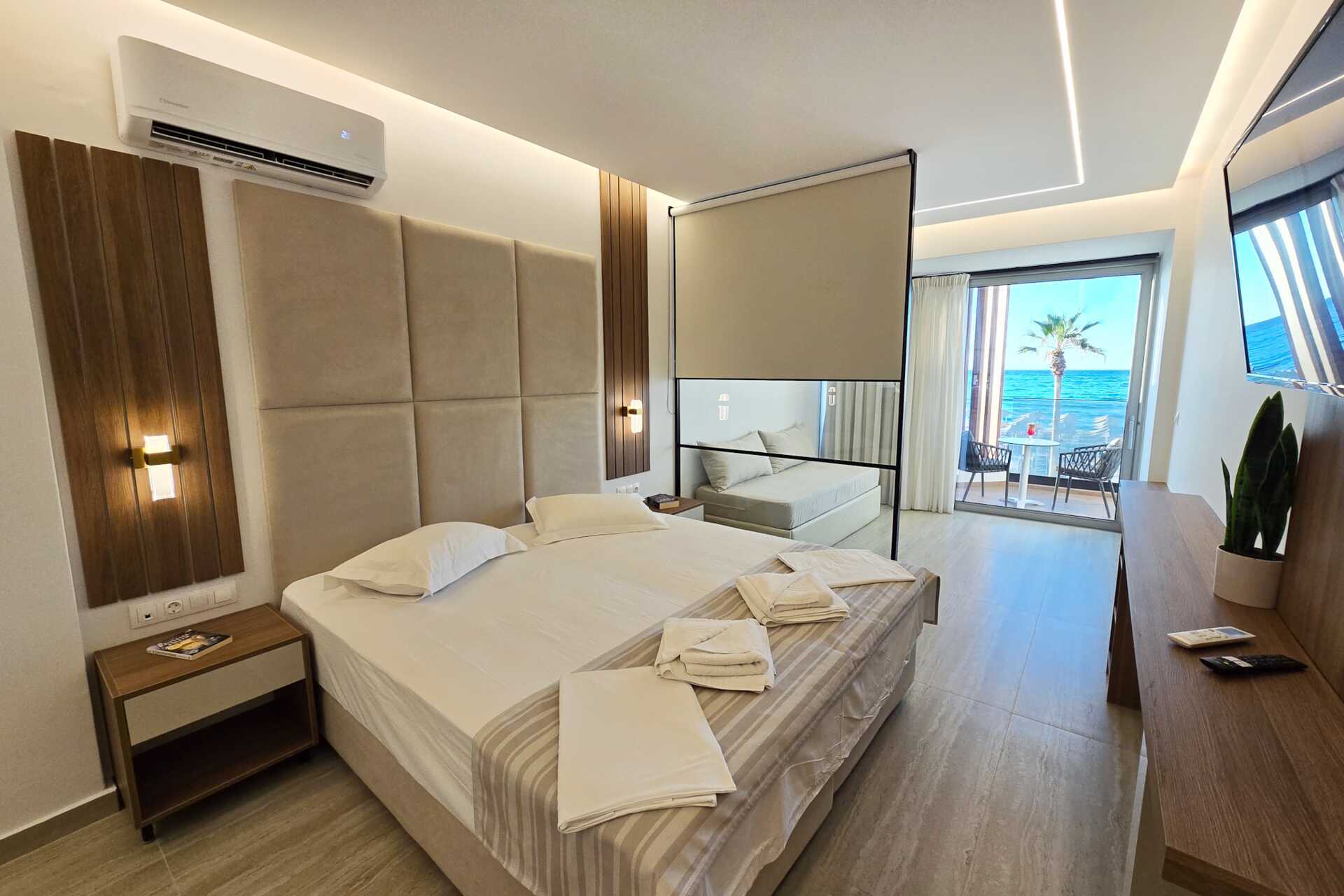 Feriefølelsen starter rett utenfor døren din! Hvis du velger Theo, vil du bo med Rethymnons herlige sandstrand som din nærmeste nabo – bare gå ut og kjenn sanden mellom tærne. Når du har fått din dose med sol og bad kan du ta den korte spaserturen inn til den sjarmerende gamlebyen. Der finner du alt fra koselige tavernaer og livlige barer til små butikker fulle av særpreg. Her er det bare å nyte – hva du enn skulle ønske!