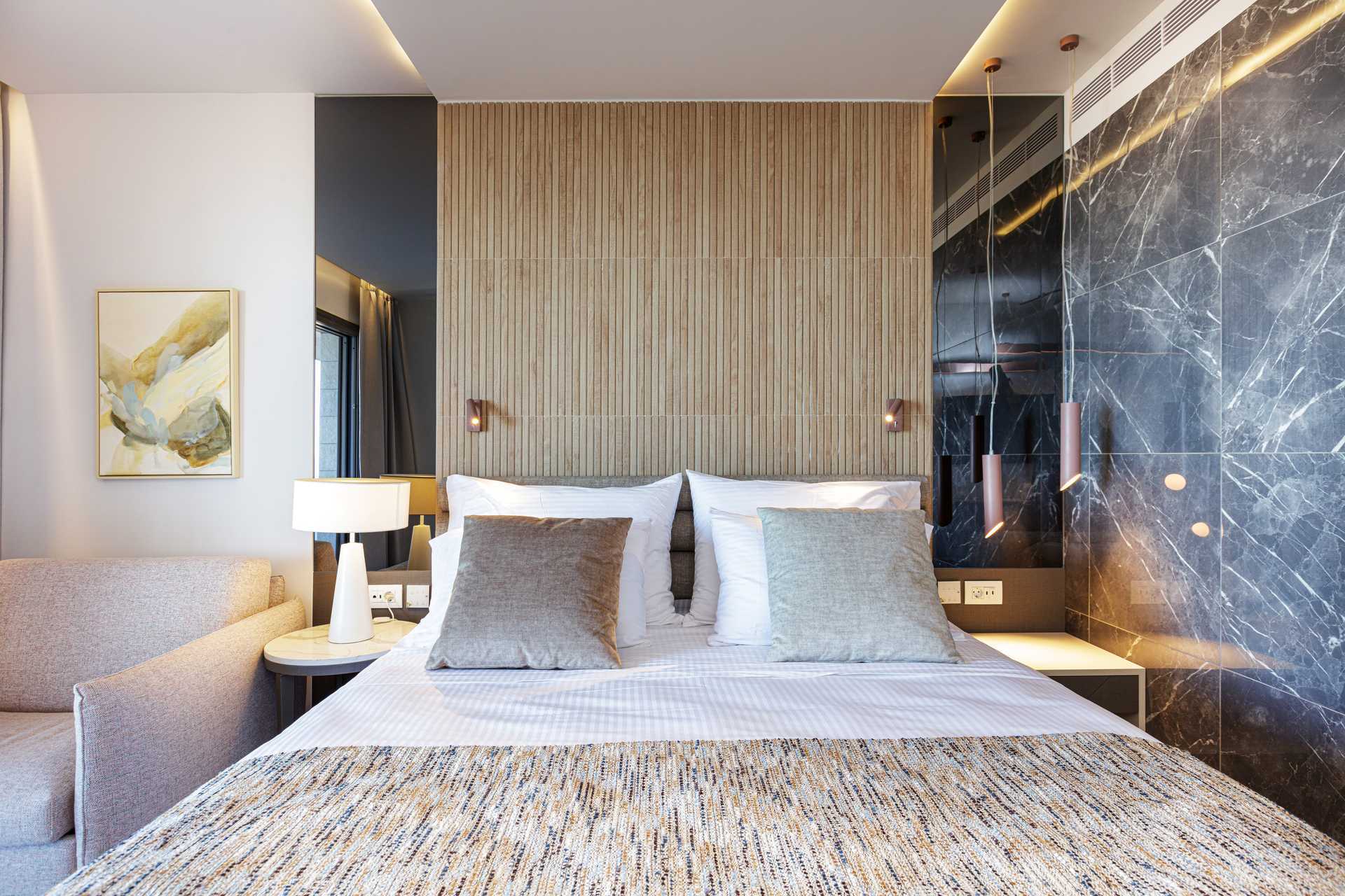 Juniorsuite med balkong og begrenset havutsikt. En dobbeltseng. Mulig med ekstraseng i sovesofa. Wifi, luftkondisjonering og safe er inkludert. Kjøleskap. Nespresso kaffemaskin, kapsler inkludert og etterfylles hver dag. Vannkoker samt kaffe og te. TV. Strykejern og strykebrett. Badekåper og tøfler. Hårføner. Badekar eller dusj samt wc. Rengjøring 7 ggr/uke.
