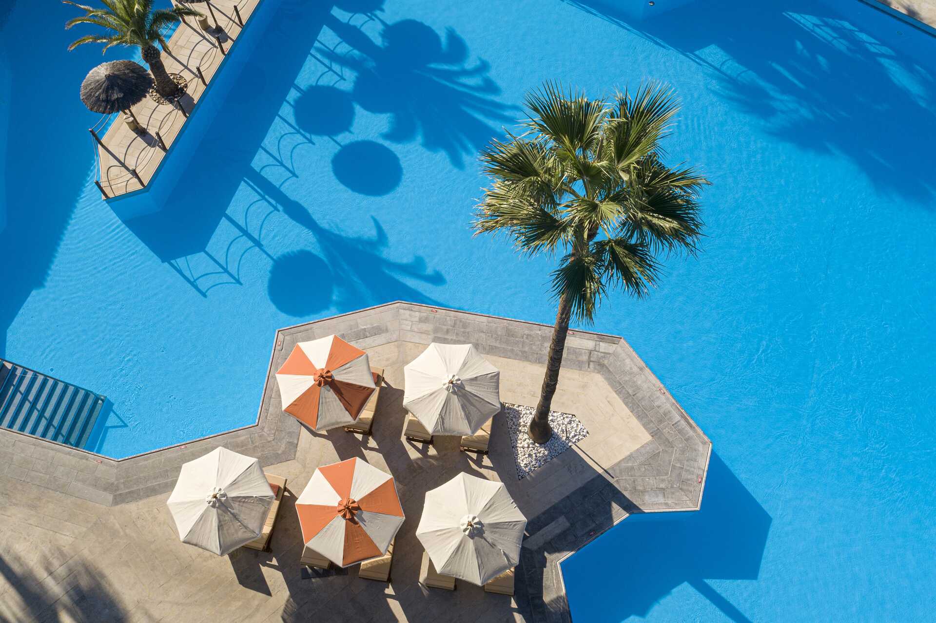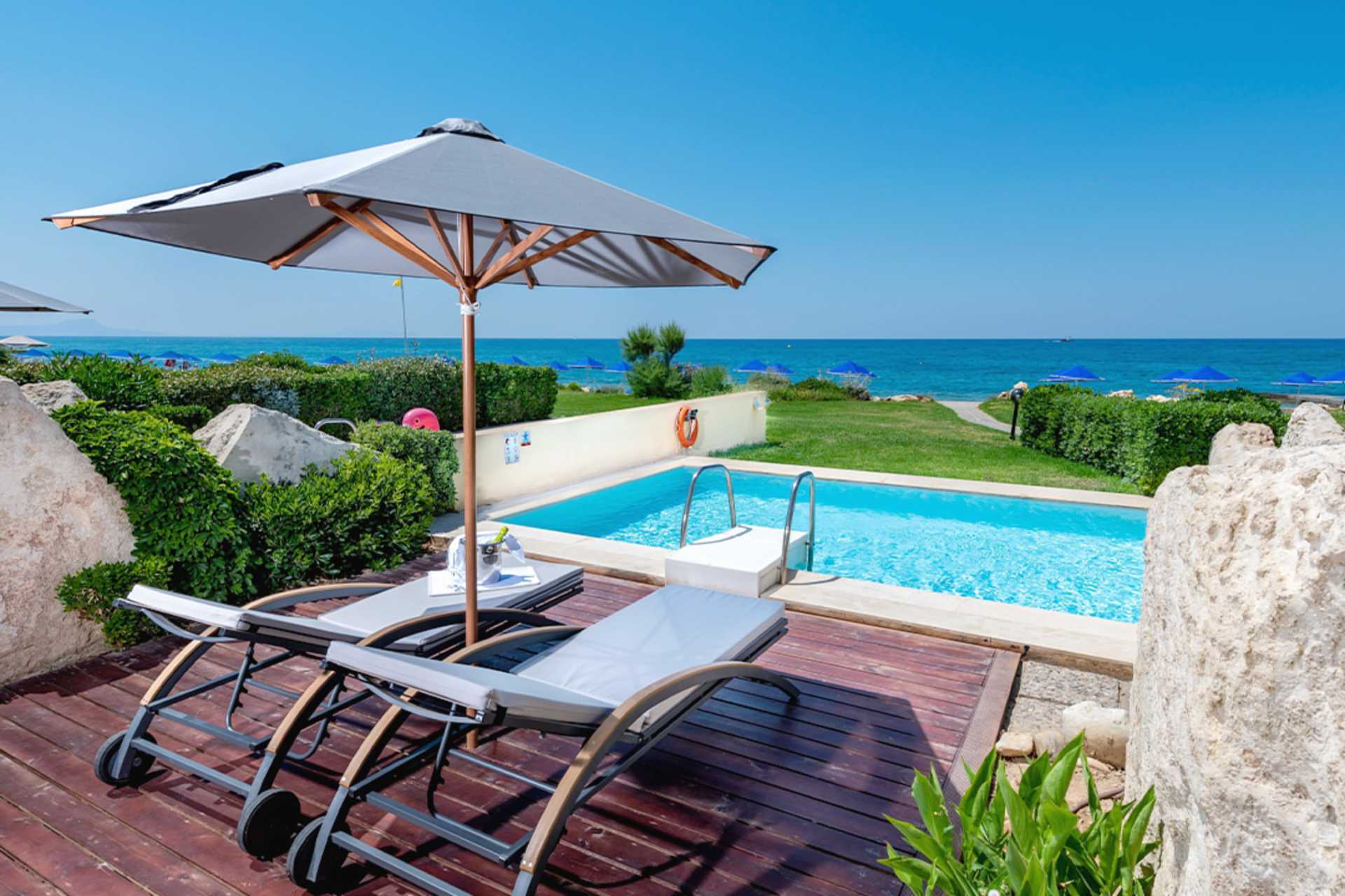 Pool Bungalow med markterrasse, eget basseng og havutsikt. Det er solsenger og parasoller på terrassen. Det er åpent mellom stue og soverom. En dobbeltseng eller to enkeltsenger. Mulig med ekstraseng i sovesofa. Putemeny. Wifi, luftkondisjonering og safe er inkludert. Minibar. Vannkoker samt kaffe og te. En fruktkurv og en flaske vin er tilgjengelig på rommet ved ankomst den første dagen. Egen innsjekkingsskranke og om mulig sen utsjekking. TV. Badekåper og tøfler. Strandveske med basseng og badehåndklær er tilgjengelig på rommet. Hårføner. Baderom med badekar og wc. Rengjøring 7 ggr/uke.