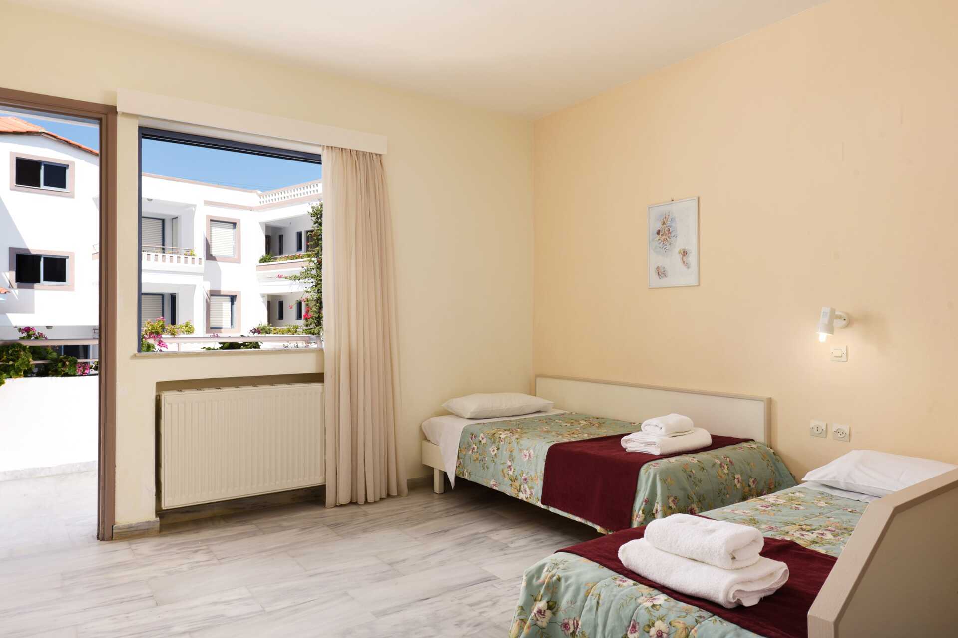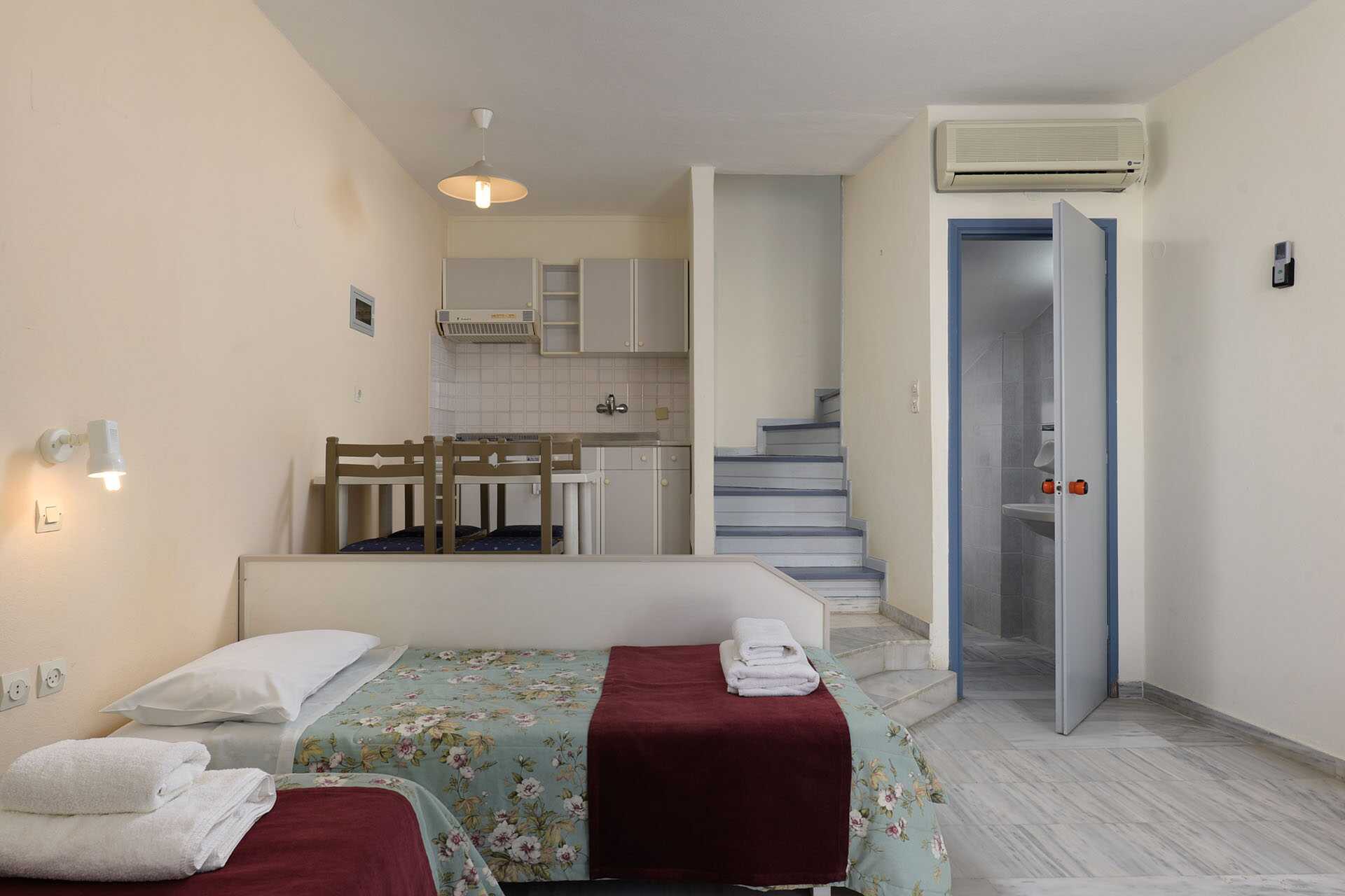 Ettromsleilighet med balkong eller terrasse. Minikjøkken. To enkeltsenger. Mulig med ekstraseng i sovesofa. Minikjøkken med kokeplater, kjøleskap, vannkoker og enkelt kjøkkenutstyr. Wifi og luftkondisjonering er inkludert. Safe mot avgift. TV. Hårføner. Dusj og wc. Rengjøring 6 ggr/uke.