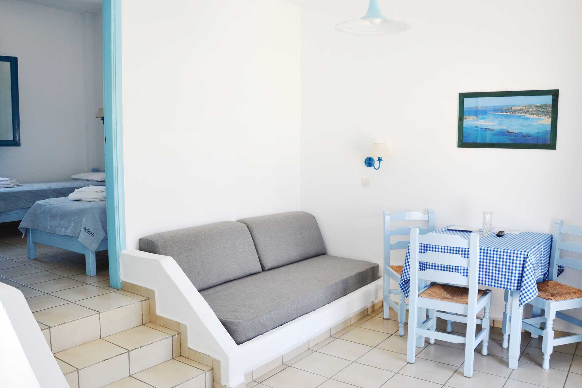 Toromsleilighet med balkong eller terrasse. Et soverom og en stue med minikjøkken. To enkeltsenger. Mulig med ekstrasenger i sovesofa. I noen leiligheter er soverommet og stuen atskilt med et to-tre trappetrinn. Minikjøkken med kokeplater, kjøleskap, vannkoker, kaffetrakter og enkelt kjøkkenutstyr. Wifi og luftkondisjonering inkludert. Safe mot avgift. TV. Hårføner. Badekar eller dusj samt wc. Rengjøring 6 ggr/uke. Barn under 2 år regnes inn i maksantallet i rommet.