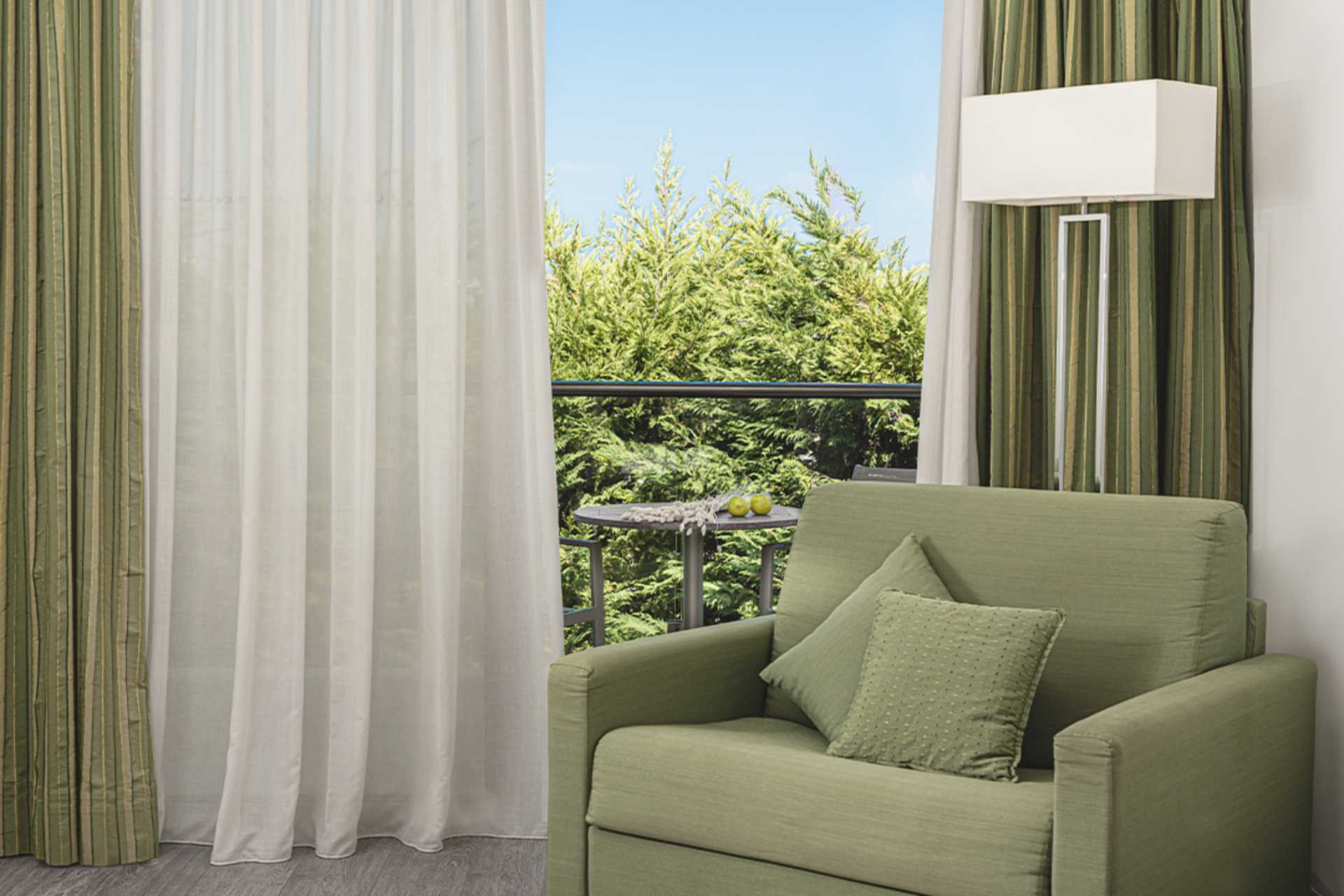 Superiorrom med balkong. Myggnetting i balkongdøren. En dobbeltseng eller to enkeltsenger. Mulig med en ekstraseng i sovesofa. Vannkoker samt kaffe og te. Minibar. Wifi, luftkondisjonering og safe inkludert. TV. Hårføner. Badekåper og tøfler. Baderomsartikler. Bad med jacuzzi, håndklevarmer, dusj og wc. Rengjøring 7 ggr/uke. Barn under 2 år regnes inn i maksantallet i rommet.