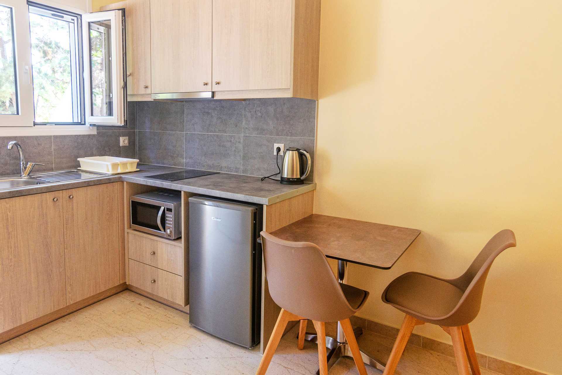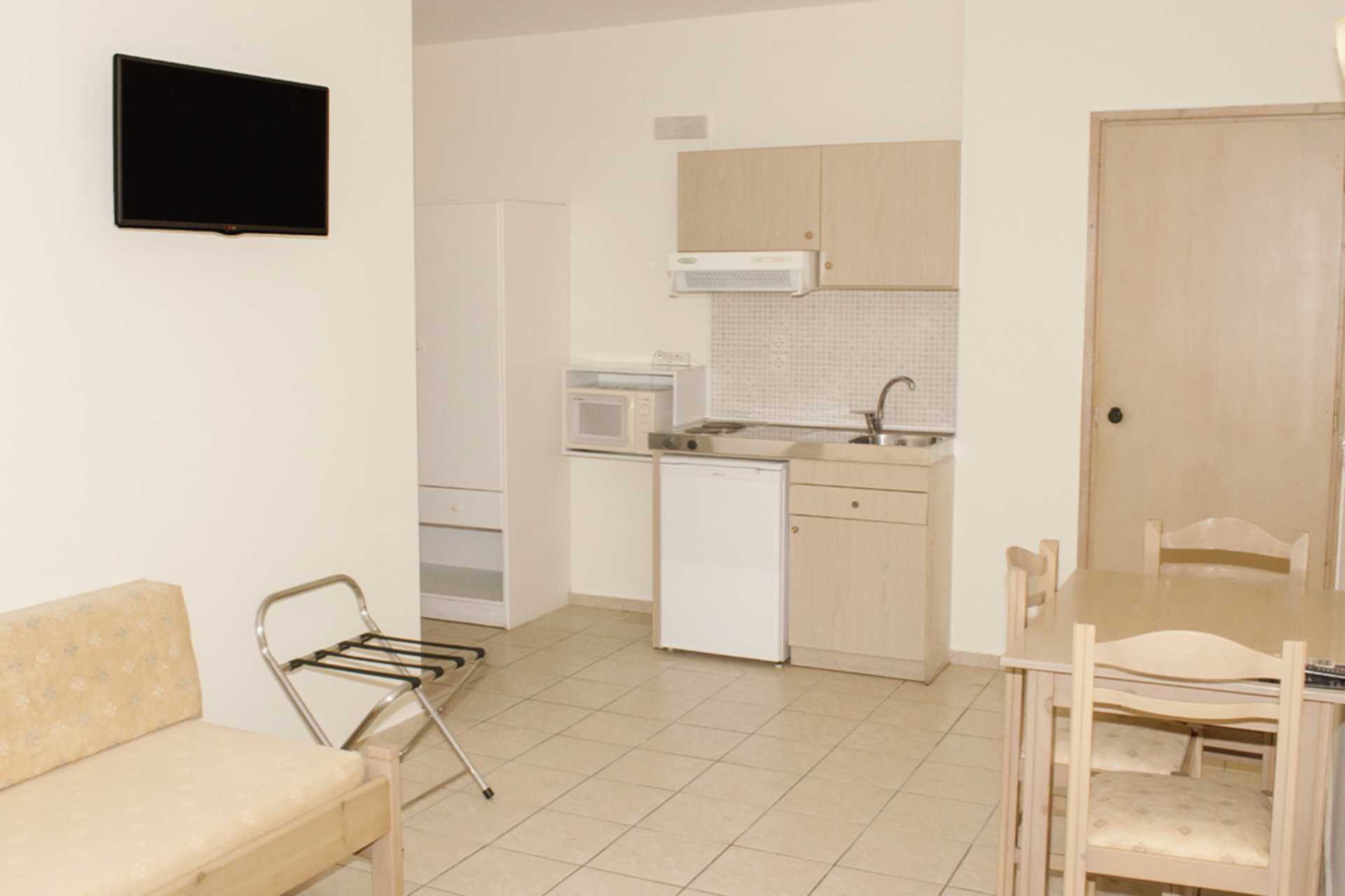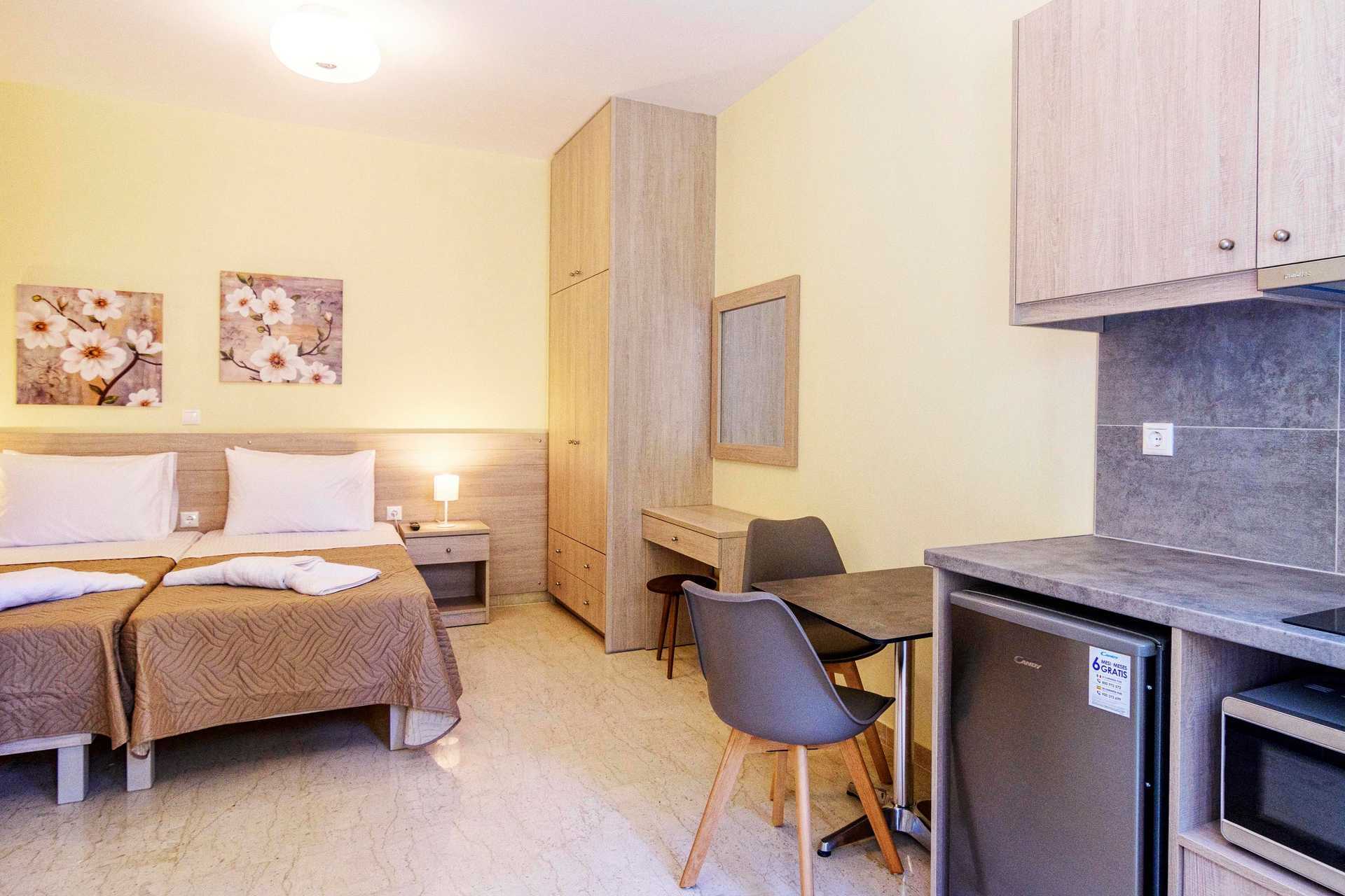 Ettromsleilighet superior med markbalkong. Leilighetene, med aldersgrense 16 år, ligger i en separat bygning cirka 50 meter fra hovedbygningen. Kombinert soverom og minikjøkken. En dobbeltseng eller to enkeltsenger. Minikjøkken med kokeplater, kjøleskap, vannkoker, kaffetrakter og enkelt kjøkkenutstyr. Luftkondisjonering, safe og wifi inkludert. TV. Badekar eller dusj samt wc. Rengjøring 7 ggr/uke.