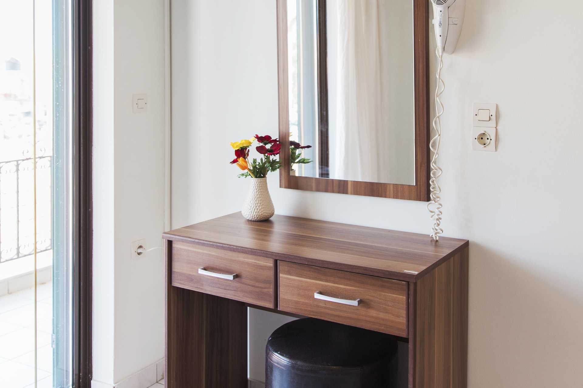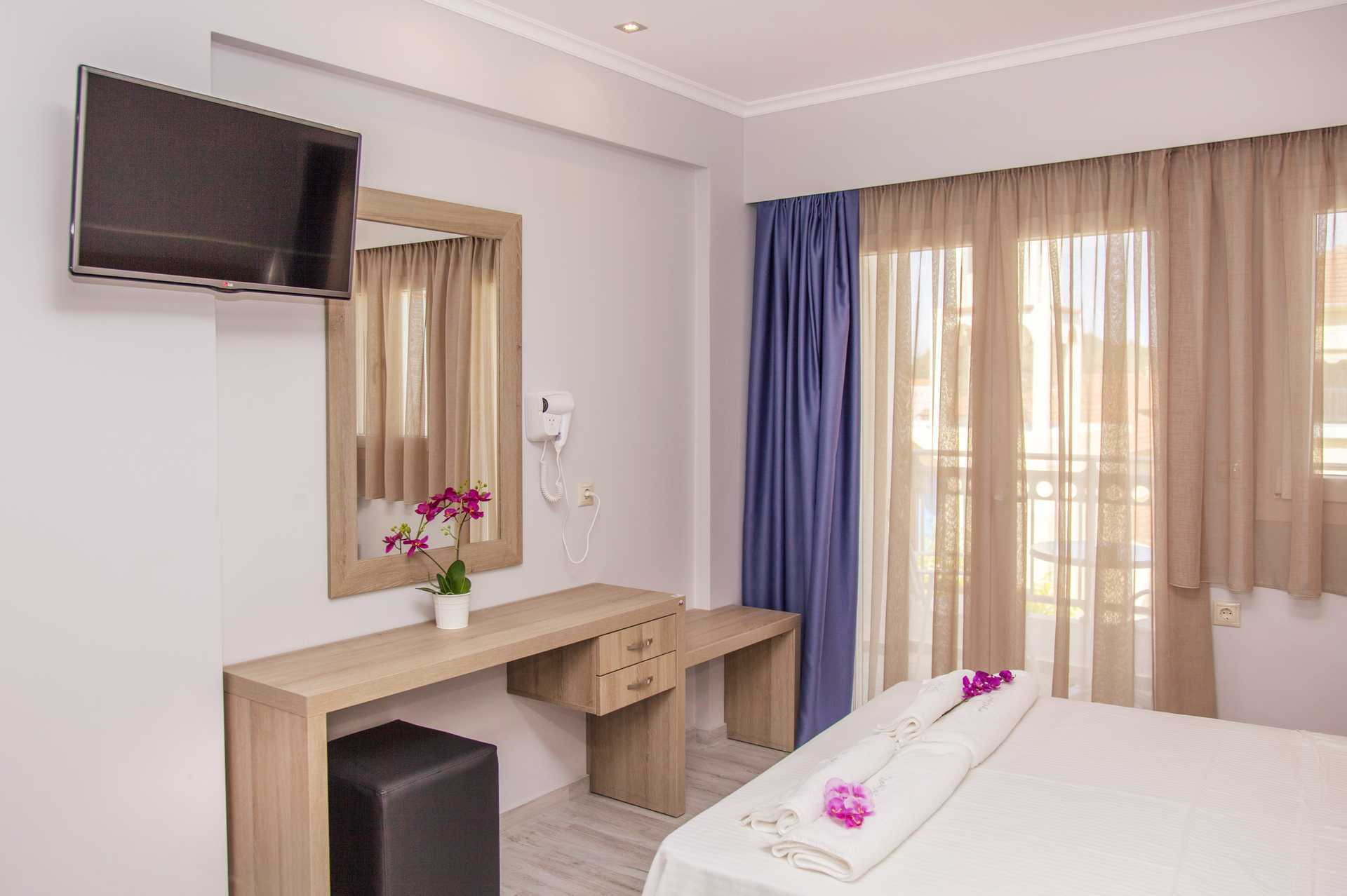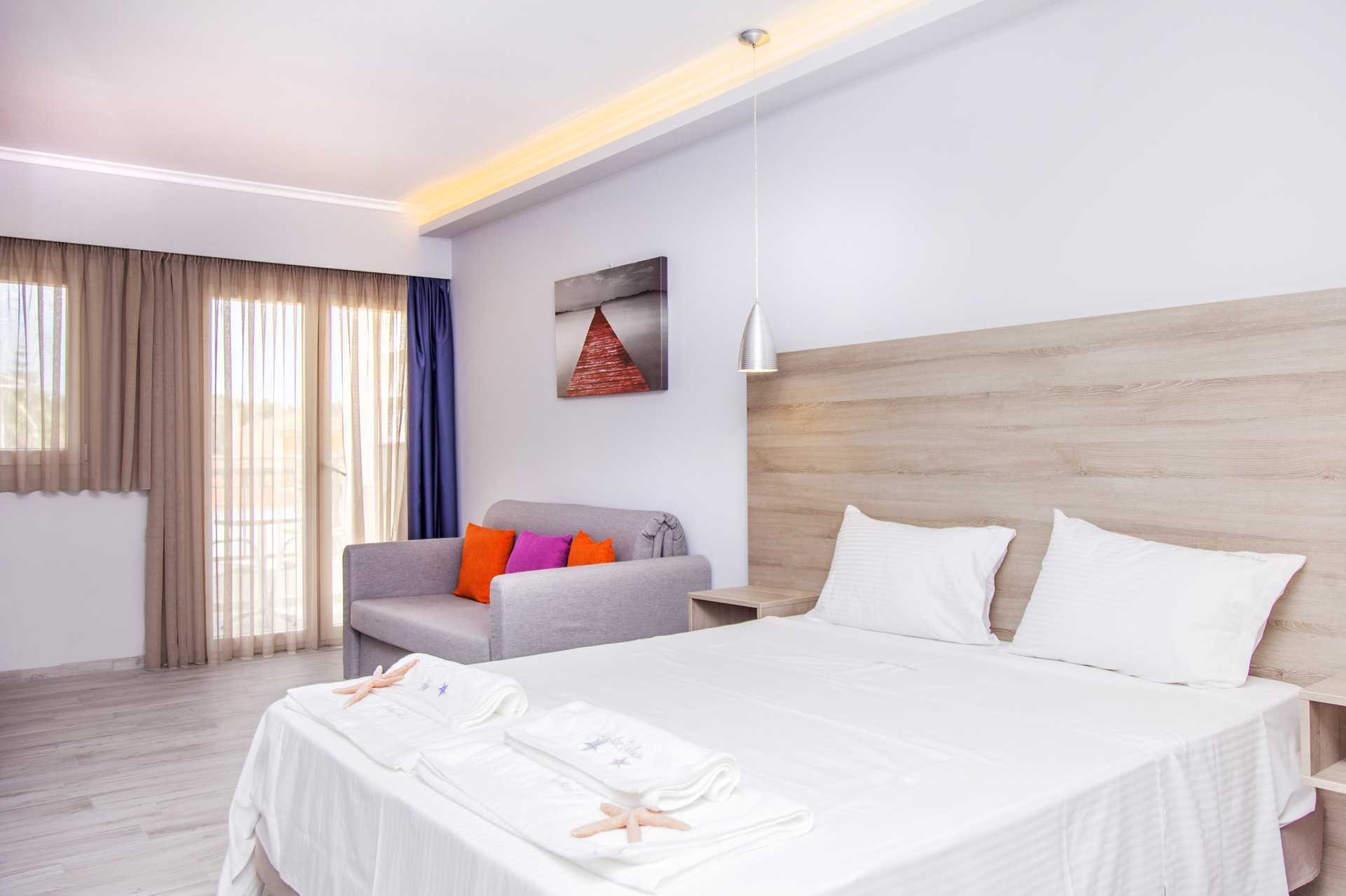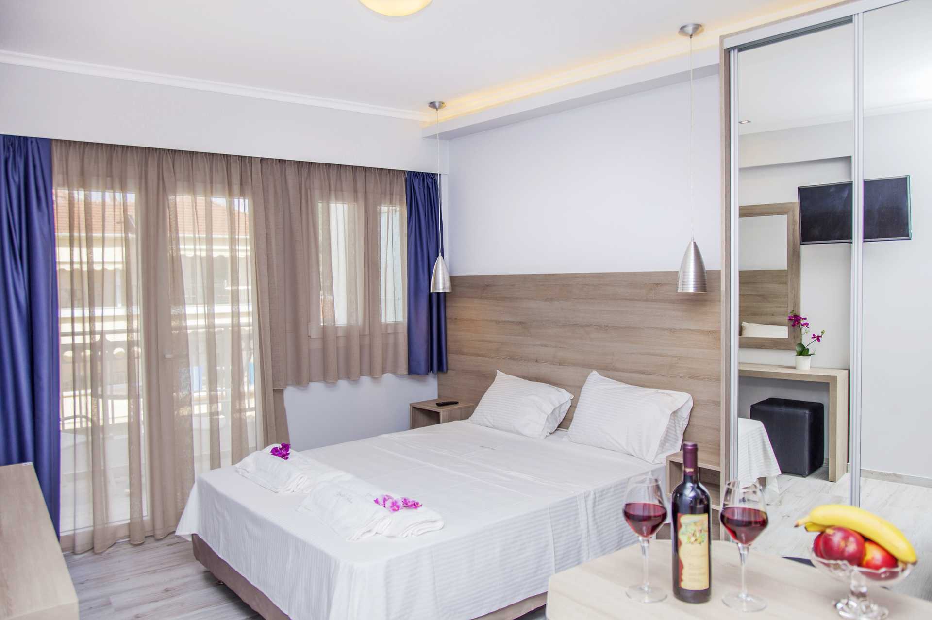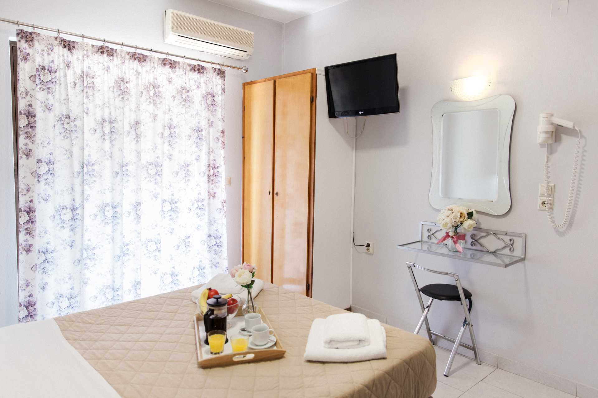Ettromsleilighet med balkong. Minikjøkken. En dobbeltseng eller to enkeltsenger. Mulig med en ekstraseng i sovesofa. Hvis det bor tre personer i rommet, kan det oppleves som trangt. Minikjøkken med kokeplater, kjøleskap, vannkoker og enkelt kjøkkenutstyr. Wifi inkludert. Luftkondisjonering og safe mot avgift. TV. Hårføner. Baderom med dusj og wc. Rengjøring 6 ggr/uke.