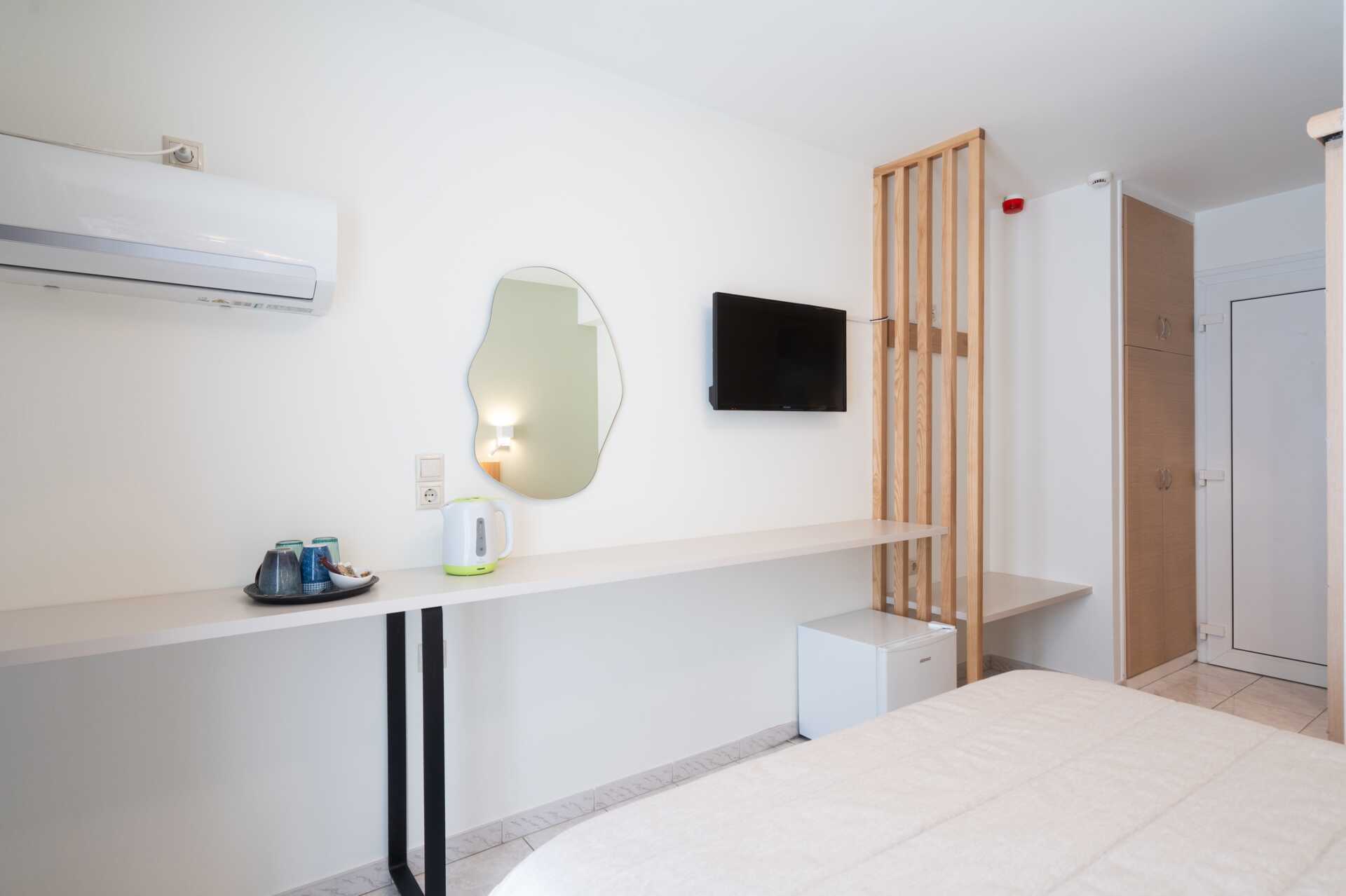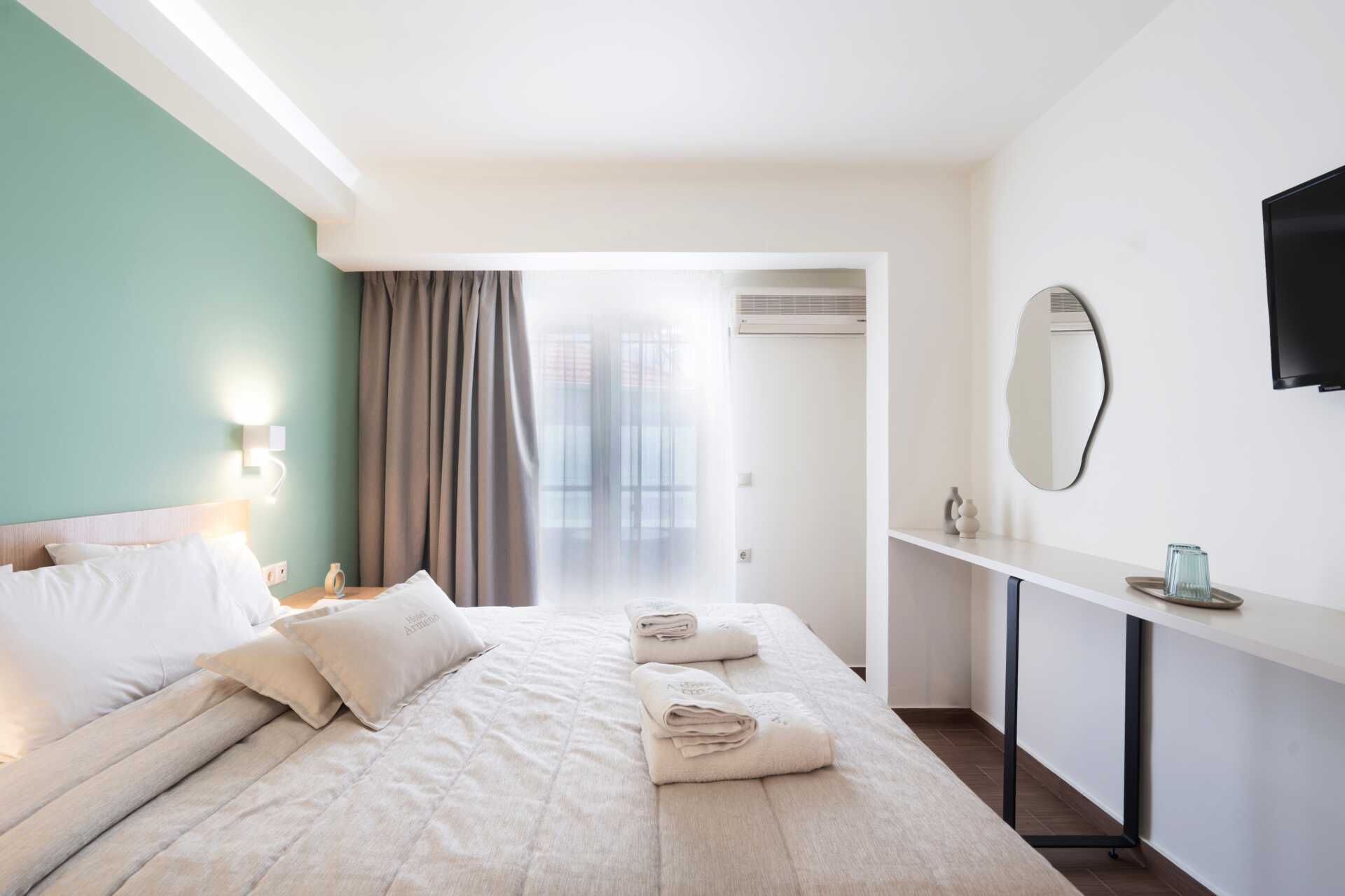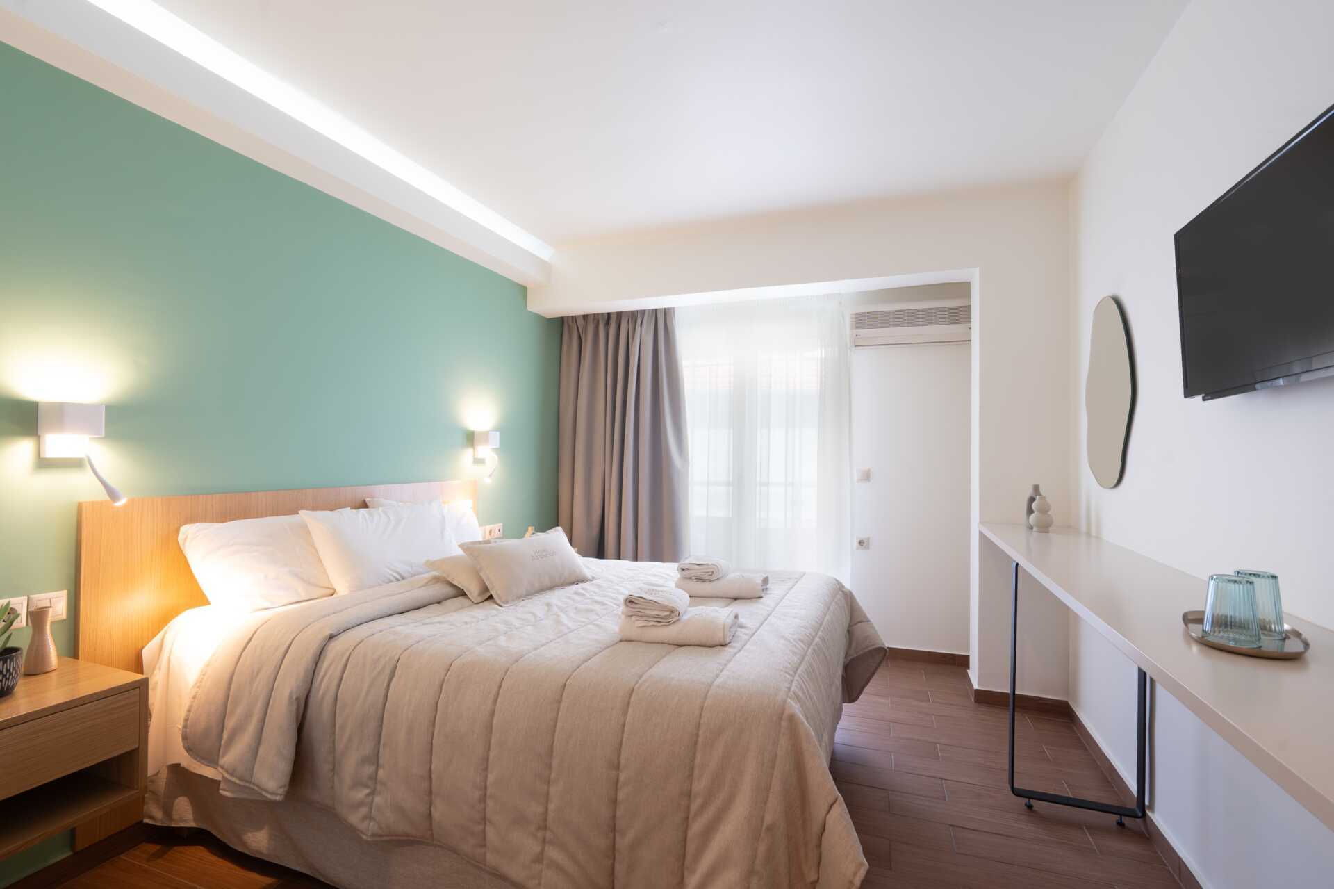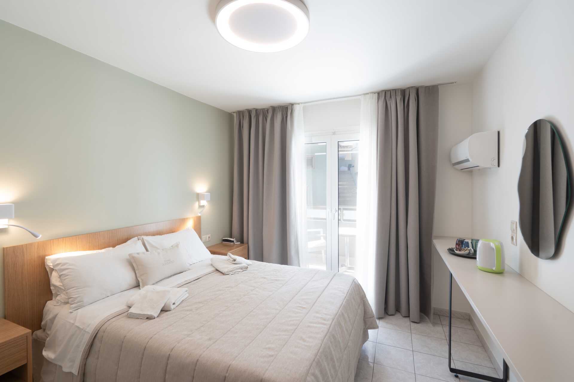 Dobbeltrom med balkong eller terrasse i første etasje, med begrenset havutsikt eller med havutsikt. En dobbeltseng eller to enkeltsenger. Mulig med ekstrasenger i enkeltsenger. Wifi, luftkondisjonering og safe inkludert. Kjøleskap. Vannkoker samt kaffe og te. TV. Hårføner. Baderom med dusj og wc. Rengjøring 7 ggr/uke.