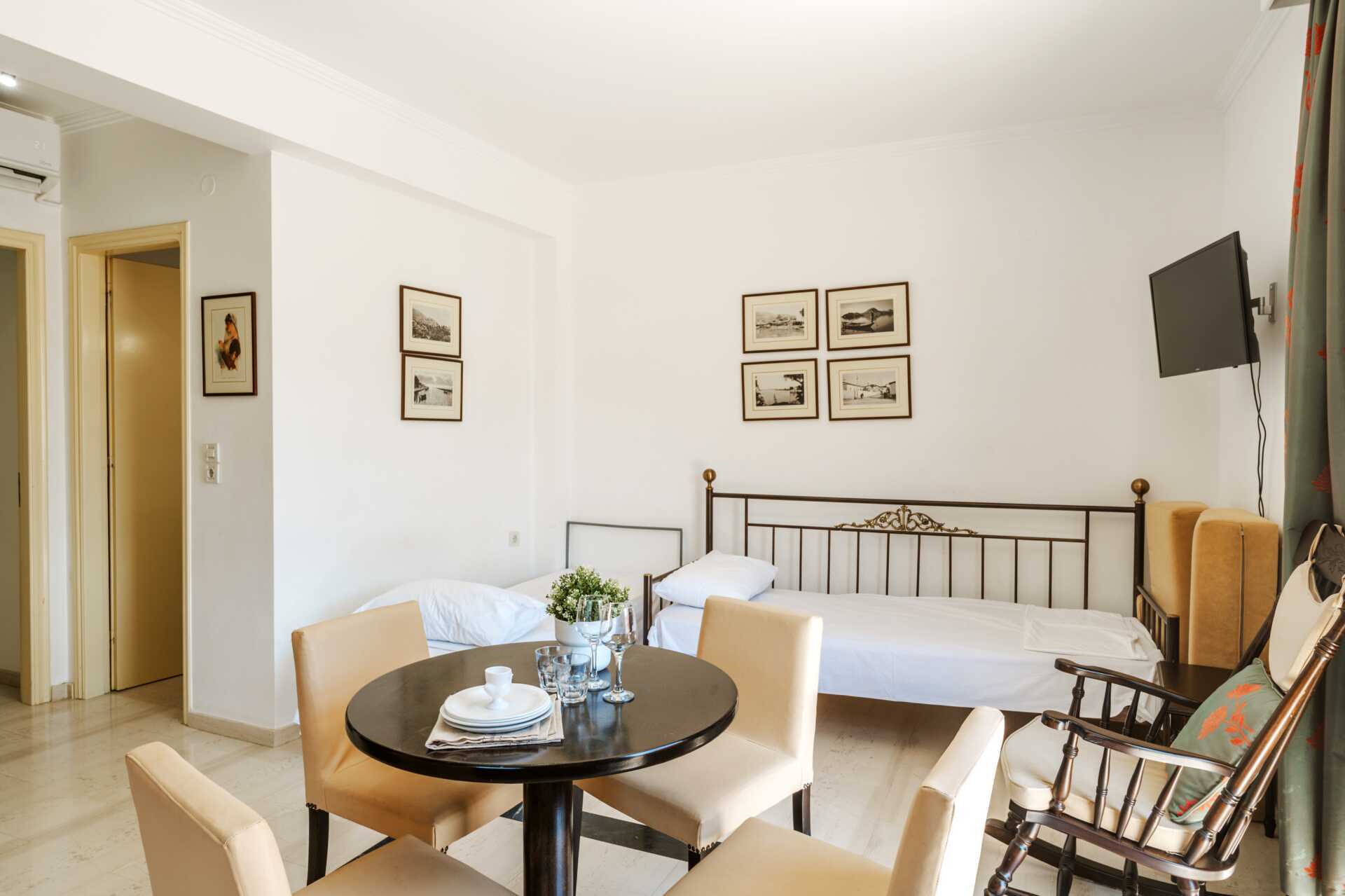 Ettromsleilighet med balkong eller markbalkong, noen med bassengutsikt. Alle ettromsleilighetene ligger i den eldre delen. Minikjøkken. En dobbeltseng eller to enkeltsenger. Mulig med ekstrasenger i sovesofa. Minikjøkken med kjøleskap, kokeplater, vannkoker og enkelt kjøkkenutstyr. Wifi, luftkondisjonering og safe inkludert. TV med lokale kanaler. Hårføner. Bad med dusj og wc. Rengjøring 6 ggr/uke. Interiørdesignet kan variere mellom leilighetene.