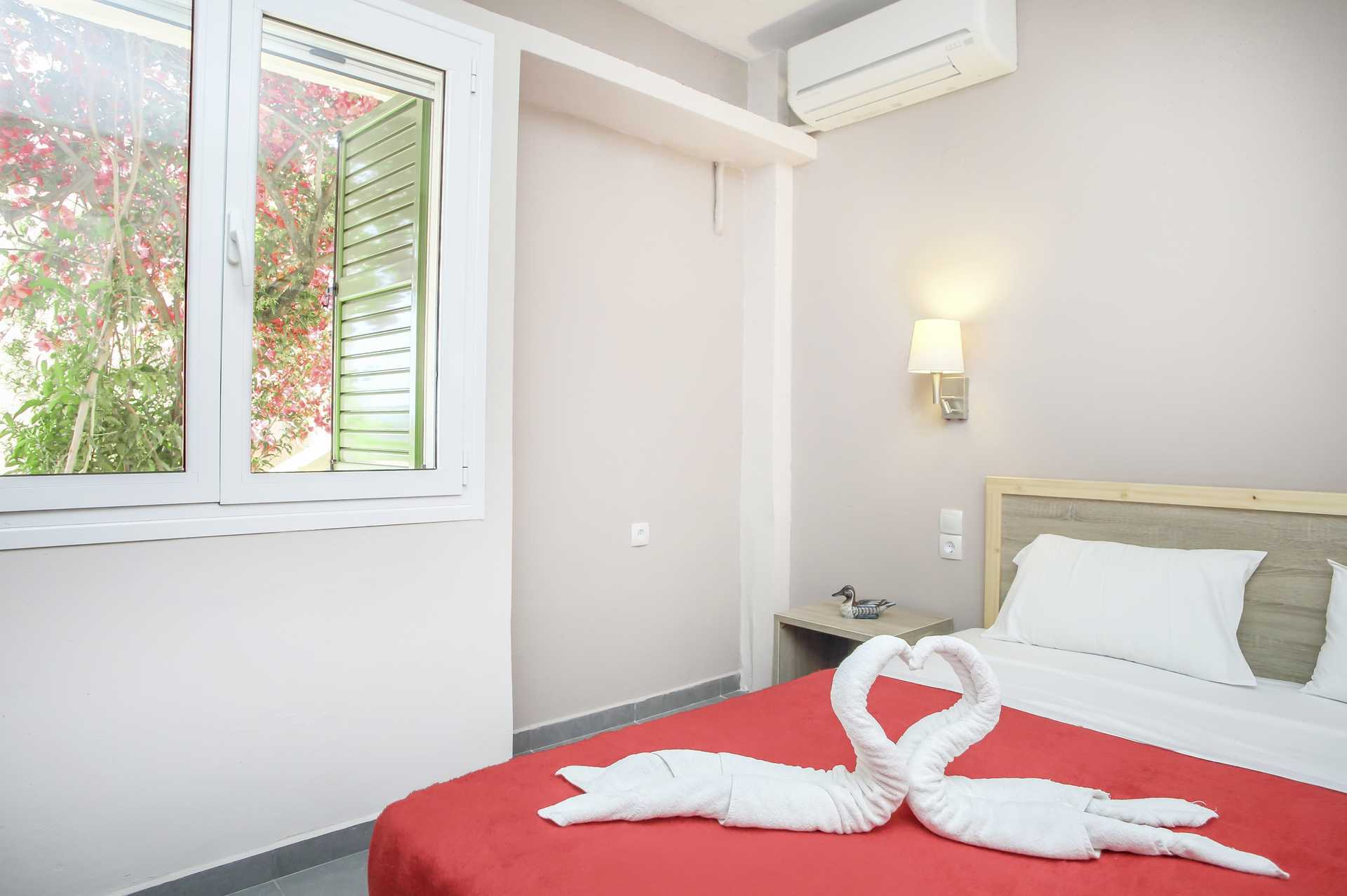 Ettromsleiligheter i ulike størrelser. Balkong eller terrasse med havutsikt. Minikjøkken. Gulvfaste senger, dobbeltseng eller to enkeltsenger. Mulig med ekstraseng i sovesofa. Minikjøkken med kokeplater, kjøleskap, vannkoker og enkelt kjøkkenutstyr. Wifi og luftkondisjonering er inkludert. TV med lokale kanaler. Hårføner. Badekar eller dusj samt wc. Rengjøring 3 ggr/uke.