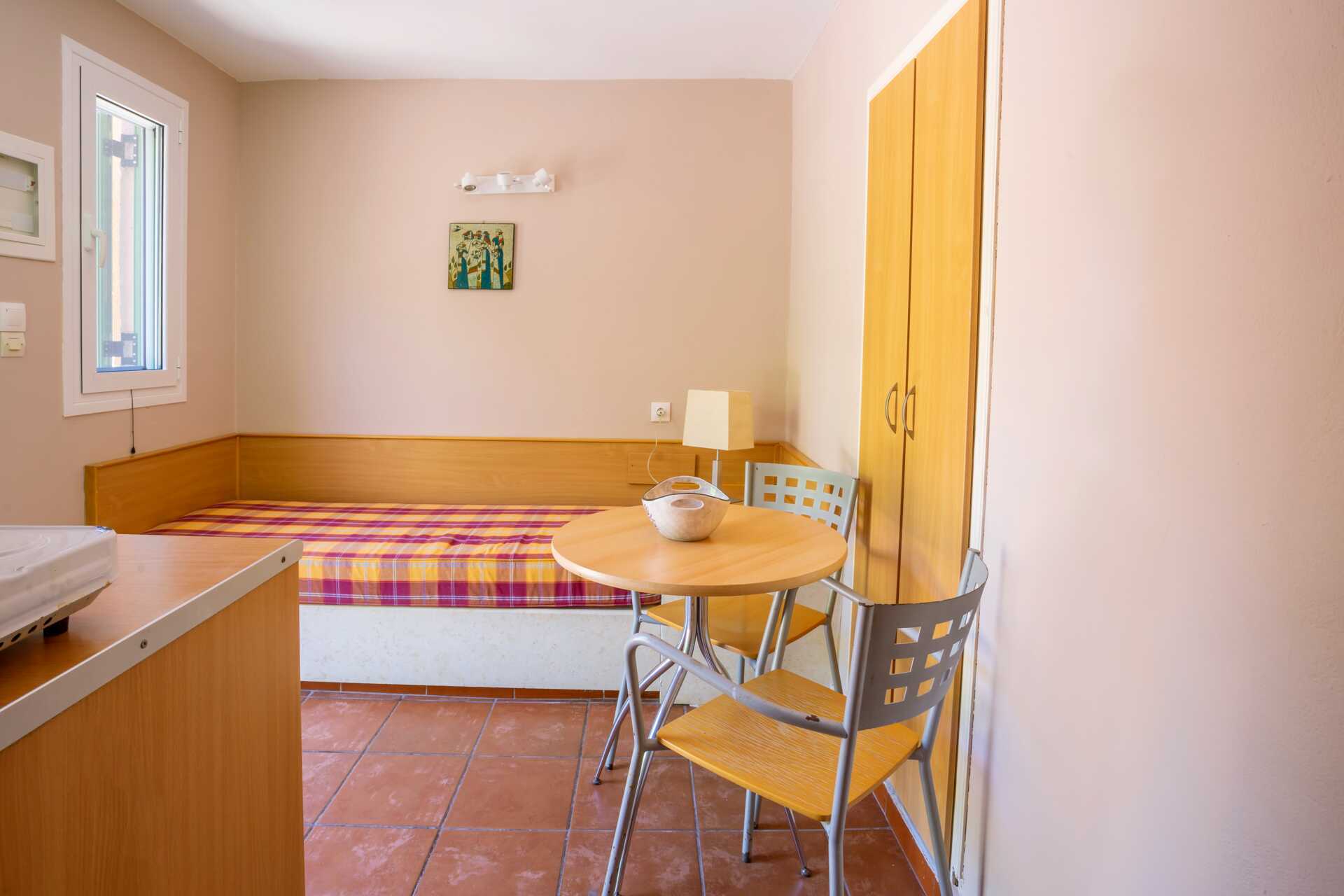 Toromsleilighter, ikke renovert, av varierende størrelse og standard. Delt uteplass, noen med begrenset havutsikt. Noen delte uteplasser kan benyttes som gangvei av andre gjester. Et soverom og en stue med minikjøkken. Gulvfaste senger - en dobbeltseng eller to enkeltsenger. Mulig med ekstraseng i sovesofa. Minikjøkken med kokeplater, kjøleskap, vannkoker og enkelt kjøkkenutstyr. Wifi og luftkondisjonering inkludert. TV på soverommet. Hårføner. Badekar eller dusj samt wc. Rengjøring 3 ggr/uke.