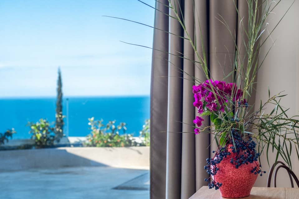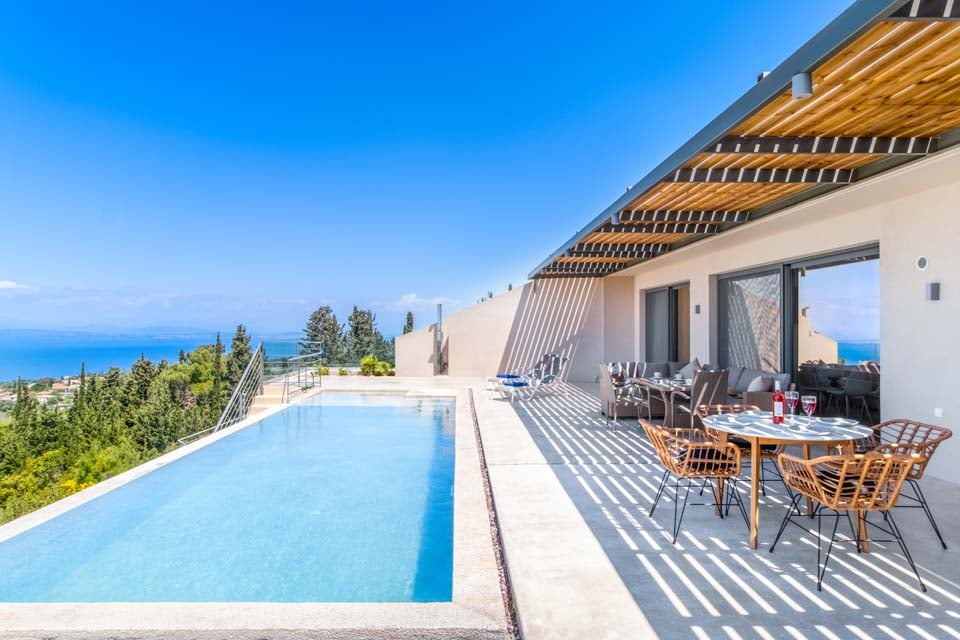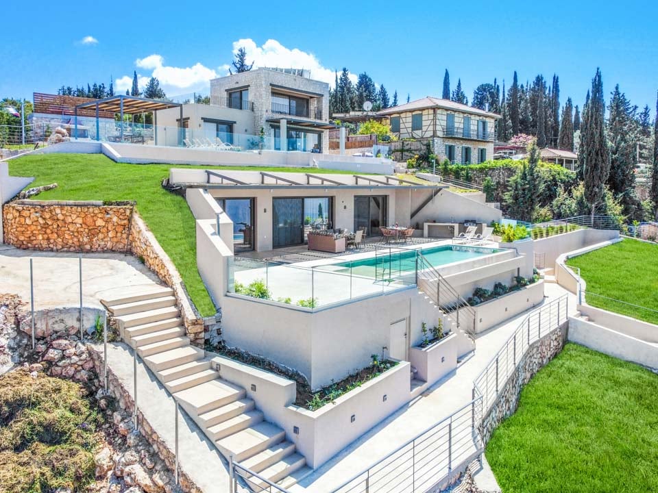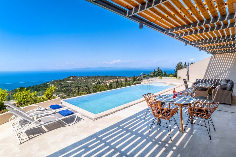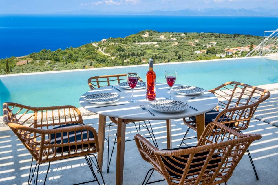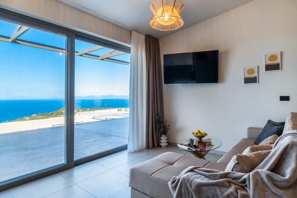 Klyngende til åssiden med utsikt over det endeløse blå joniske hav mot den joniske kystlinjen i Epirus ligger det sjarmerende «hulehuset» Villa Andromeda Sunset.