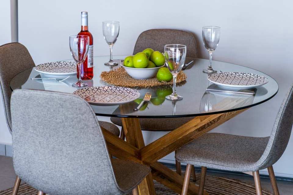 Gå inn, og du vil oppdage at alle rommene vender ut mot bassengterrassen og den fantastiske utsikten bak. Stuen med spiseplass har åpen løsning mot kjøkkenet, og hele dette området er avgrenset av store glassdører som tilbyr uendelig utsikt i hver eneste krok.