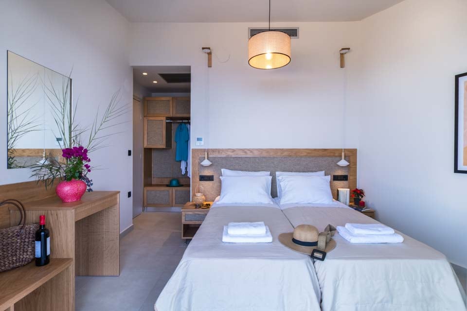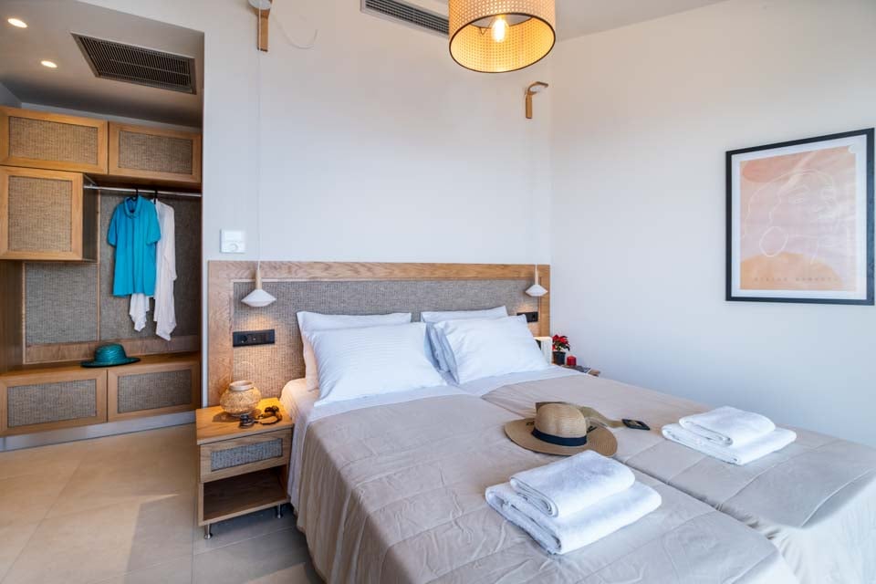 Dobbel, dobbeltseng, klimaanlegg, dører til terrasse