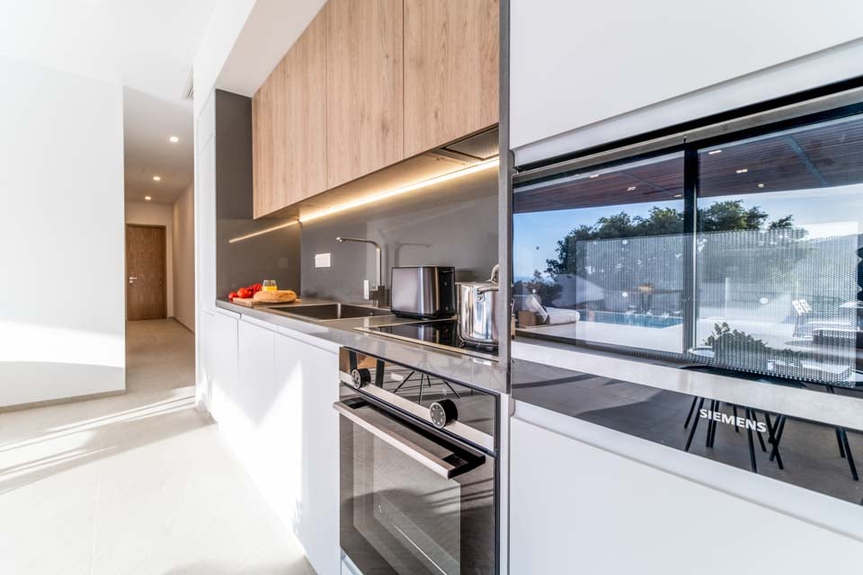 Villaen er bygget inn i den vakre åssiden og forårsaker minimal forstyrrelse av det lokale landskapet og dyrelivet, og har en beleilig beliggenhet på ett plan. Med rikelig med naturlig lys, moderne møbler av topp kvalitet og den nyeste teknologien, er dette magiske gjemmestedet det perfekte hjem borte fra hjemmet. Et fantastisk evighetsbasseng frister deg til den herlige utendørsterrassen, som også inkluderer en romslig utendørs spiseplass, grillfasiliteter og komfortable solsenger.
